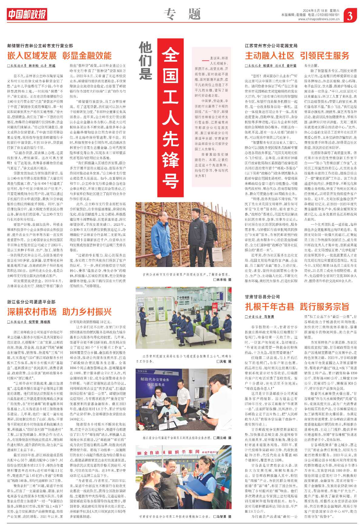 让乡亲们足不出村、在家门口享受到快捷高效的便民服务是邮政助力城乡基本公共服务均等化的初衷。几年来,渠道平台部不断创新实践,依托网点设立了超过300个“乡村振兴工作室”,100%覆盖空白乡镇,叠加政务便民服务40余项,推动公共服务优质共享,打造了邮政综合便民服务生态圈。全省1096个网点叠加警邮业务,县域覆盖率达100%,累计服务群众712万人次,列全国邮政第1位,成为全国警邮业务合作样板。与浙江省高院达成合作协议,利用邮政网点设立“共享法庭”,打通法律诉讼服务“最后一公里”。邮银协同建设信用村,为有需求的农户“量身定制”优惠便利的普惠金融服务。截至2023年底,建成信用村1.6万个,累计开发特色产业贷67种,全省邮储涉农贷款结余2400亿元。