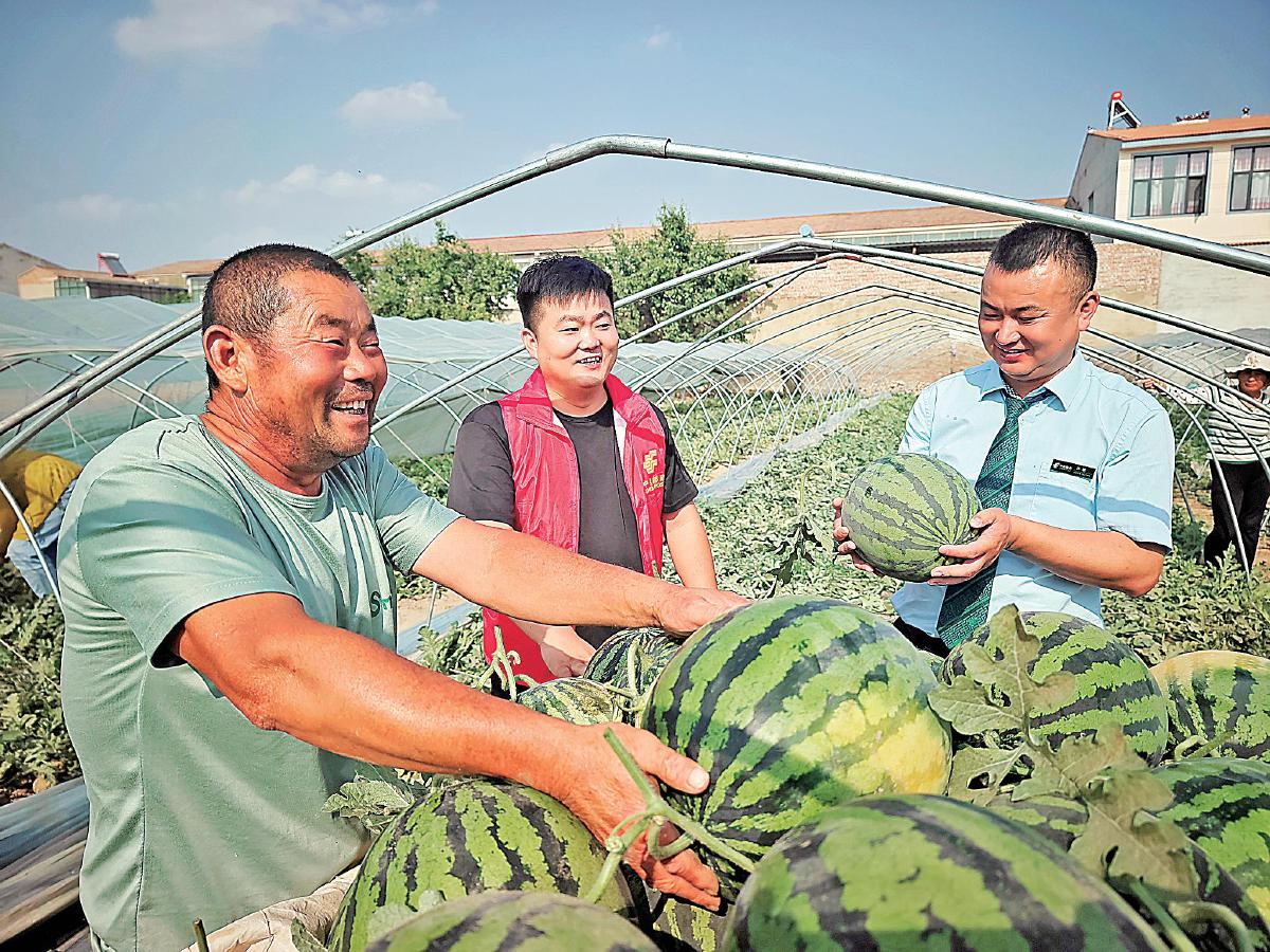 初夏时节,安徽省宿州市砀山县邮政分公司立足西瓜种植区域和季节特点,统筹调配20名业务骨干组建“金融驻点服务队”,现场跟进、满足客户在存款、贷款、支付结算等方面的需求,免费提供防暑降温物品。目前,该分公司累计设立驻点办公场所6处,服务瓜农及西瓜购销商2100余户。□房洪玲 摄影报道