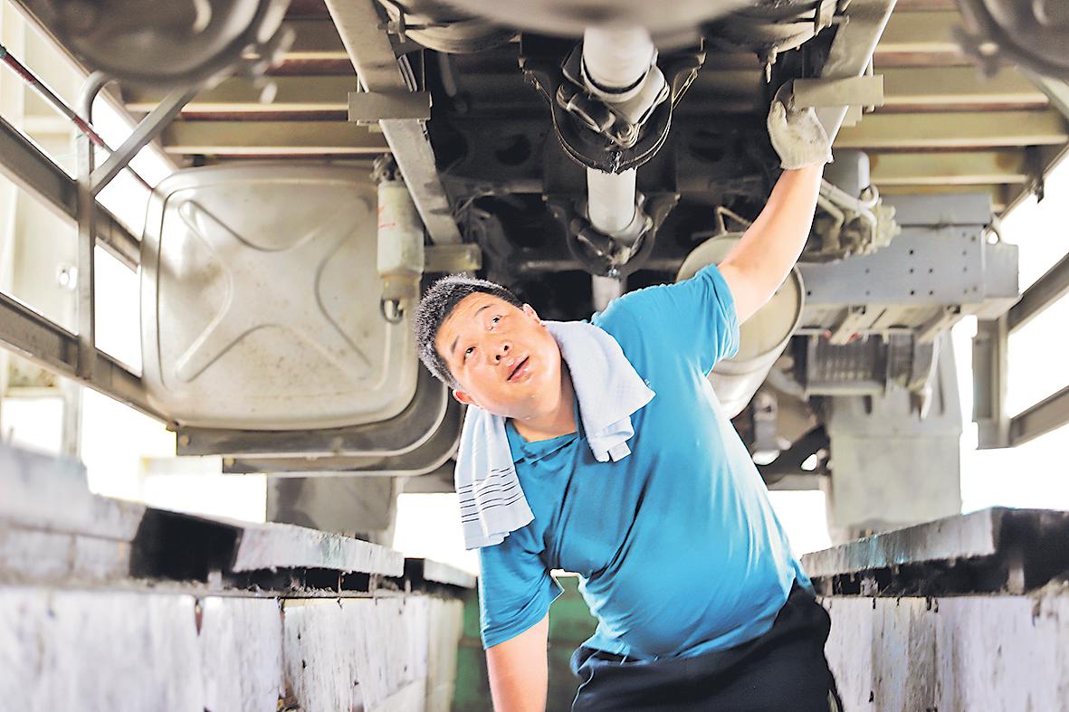 张旻归班后检修车辆。