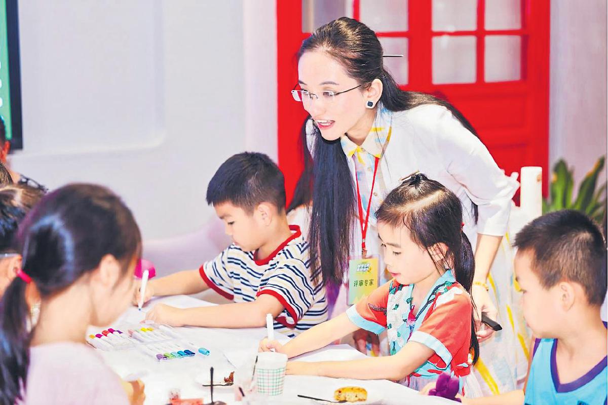8月3日,由广西壮族自治区邮政分公司、中邮保险广西分公司以及广西集邮协会联合主办,南宁市邮政分公司承办的2024年“中邮保险杯”全国少儿邮票设计大赛广西赛区正式启动,吸引了大批少年儿童积极参与。图为邮票设计师在现场指导孩子创作。