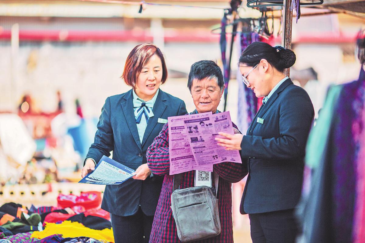 近期,各地邮政抢抓业务旺季,积极开展客户走访、业务宣传,全力打好年底“收官战”,力争明年“开门红”。图为山东省沂源县邮政分公司开展“一日三访”,邮政员工在当地市场宣传邮政业务,普及金融知识与反电信诈骗知识,受到商户的欢迎。 □周鹏 摄影报道