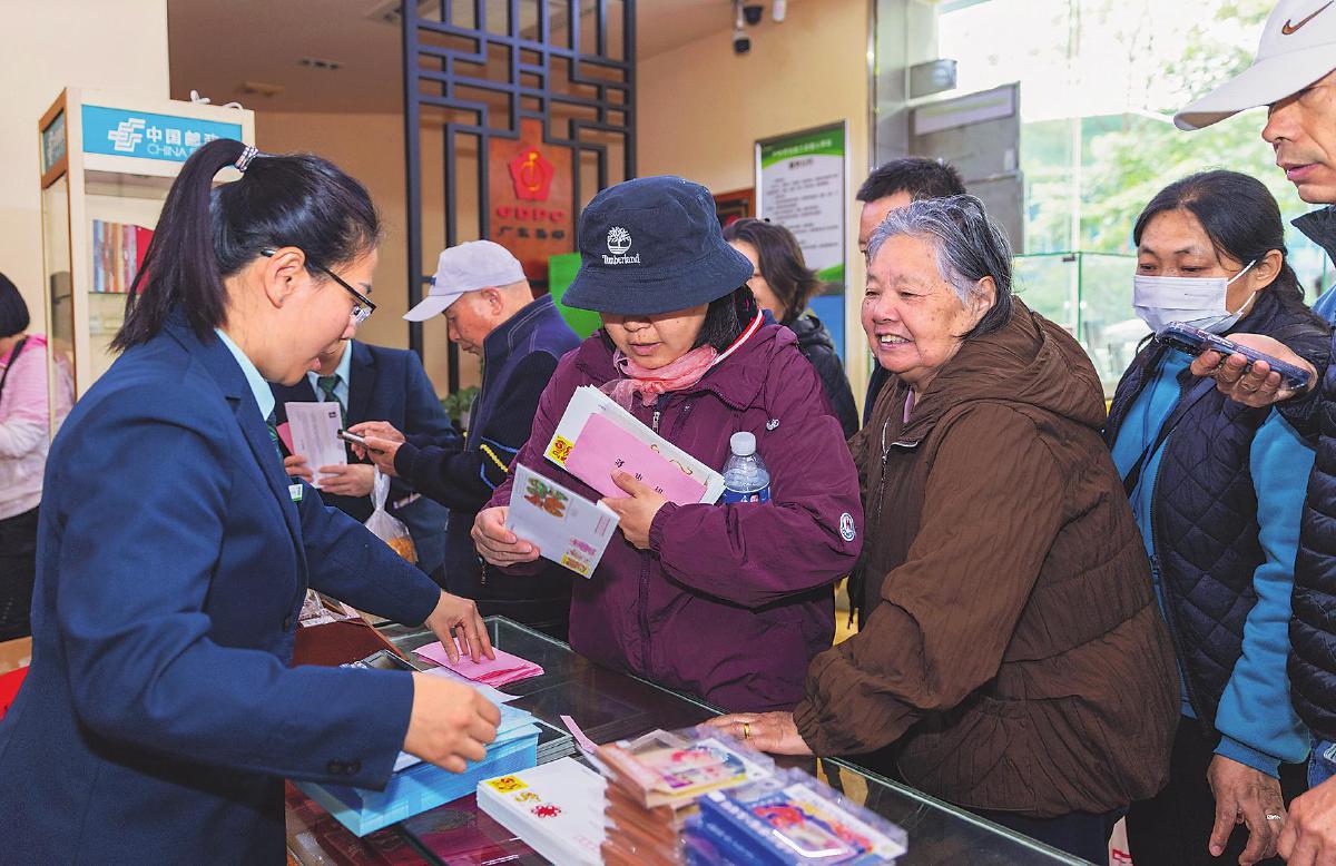 因蛇口支局的日戳带有“蛇口”二字,与蛇年邮票生肖灵蛇交相辉映,这对集邮爱好者来说有着双重意义。现场的一对夫妻开心地说:“我们一家三口都是集邮爱好者,每年我们都过来买生肖邮票。正好我和爱人都属蛇,所以今年这套蛇年邮票更有纪念意义!”
