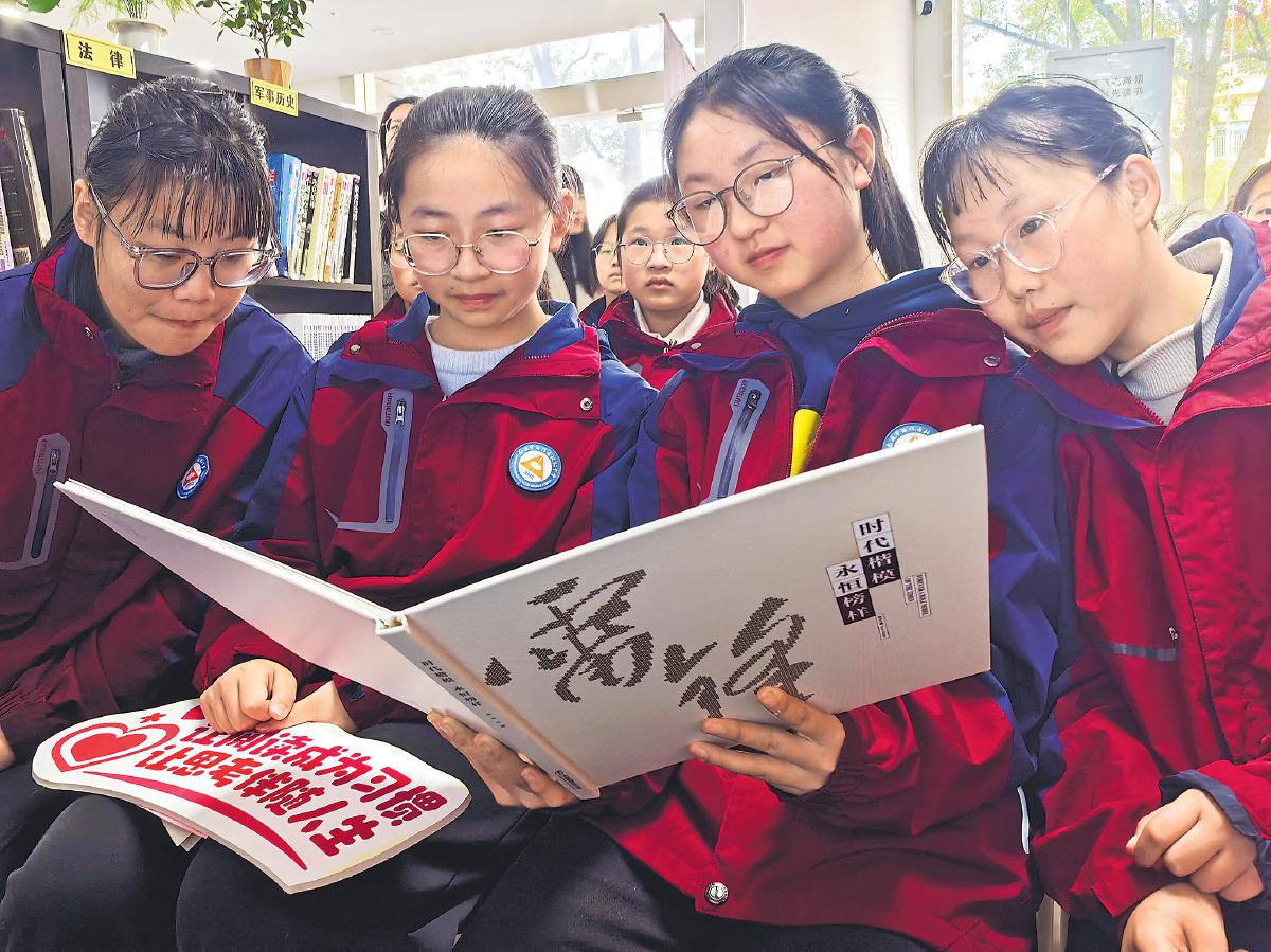 海门区分公司借助邮票这一载体,深入讲解雷锋的生平事迹与雷锋精神的内涵、雷锋主题邮票的历史以及邮票所承载的文化与教育意义,并探讨了在新时代如何传承雷锋精神等话题。图为能仁中学学生在翻阅雷锋主题邮册。 □王欢 摄影报道