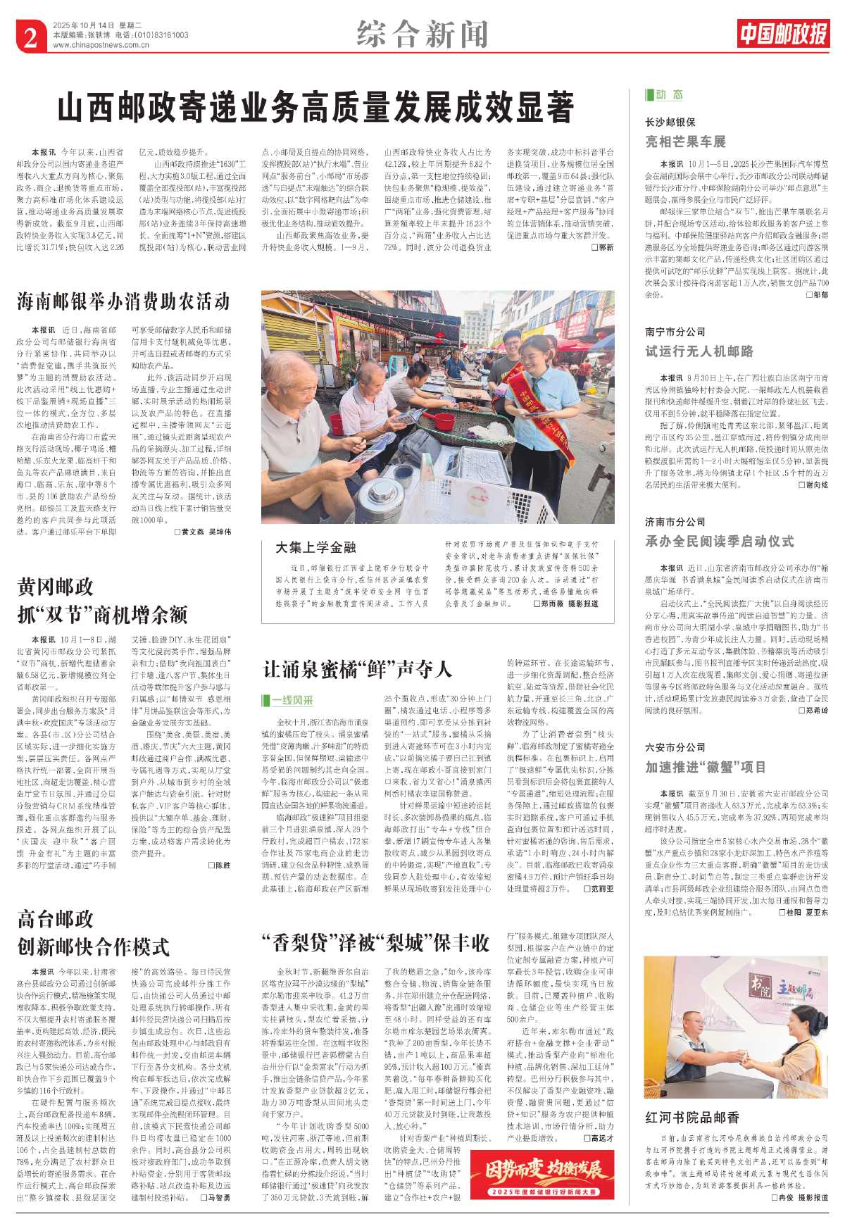 该分公司指定全市5家核心水产交易市场、28个“徽蟹”水产重点乡镇和28家小龙虾深加工、特色水产养殖等重点企业作为三大重点客群,明确“徽蟹”项目的走访成员、职责分工、时间节点等,制定三类重点客群走访开发清单;市县两级邮政企业组建综合服务团队,由网点负责人牵头对接,实现三端协同开发,加大每日通报和督导力度,及时总结优秀案例复制推广。 □桂阳 夏亚东