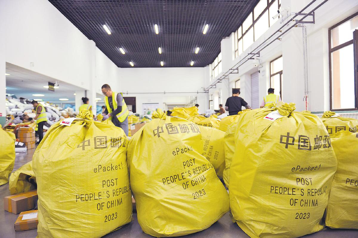 来自全国的跨境电商包裹,通过珲春国际邮件互换局通关发往俄罗斯。