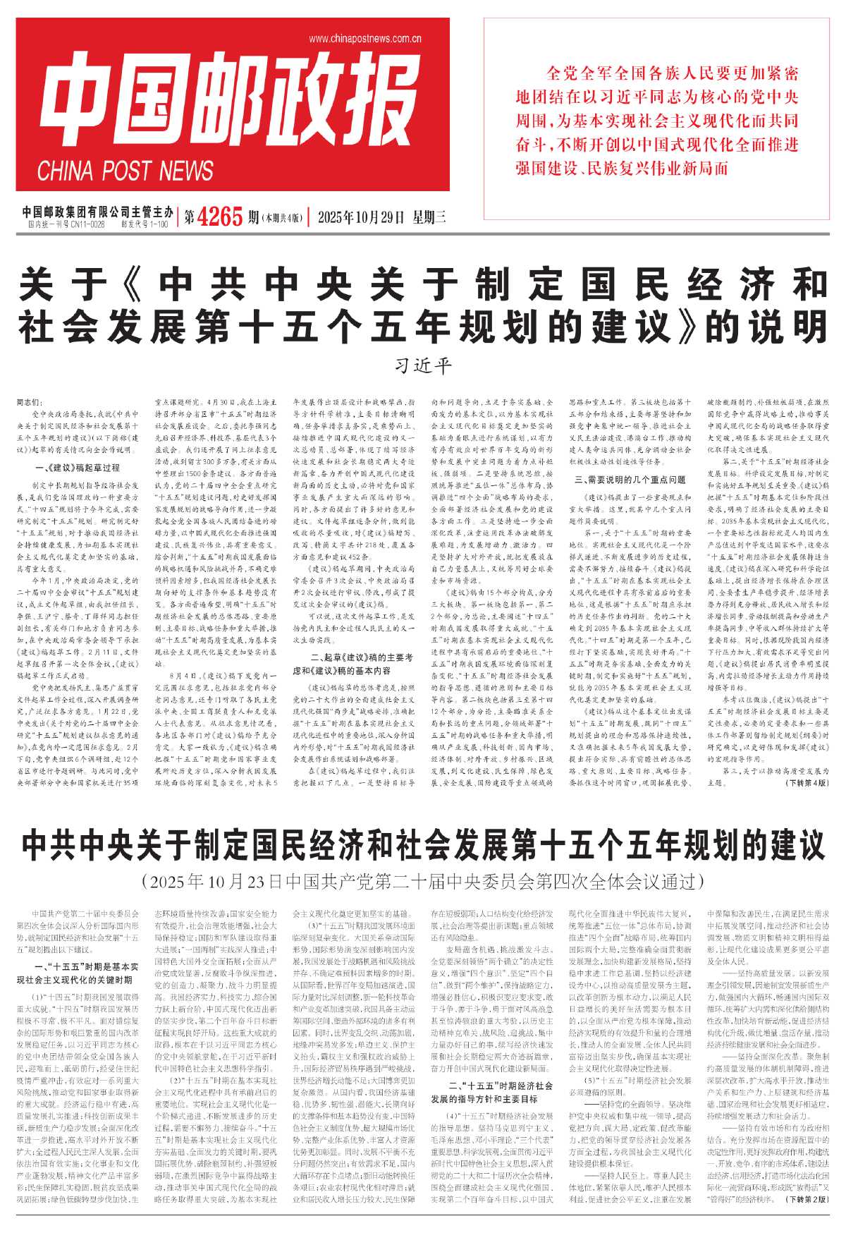 中国共产党第二十届中央委员会第四次全体会议深入分析国际国内形势,就制定国民经济和社会发展“十五五”规划提出以下建议。