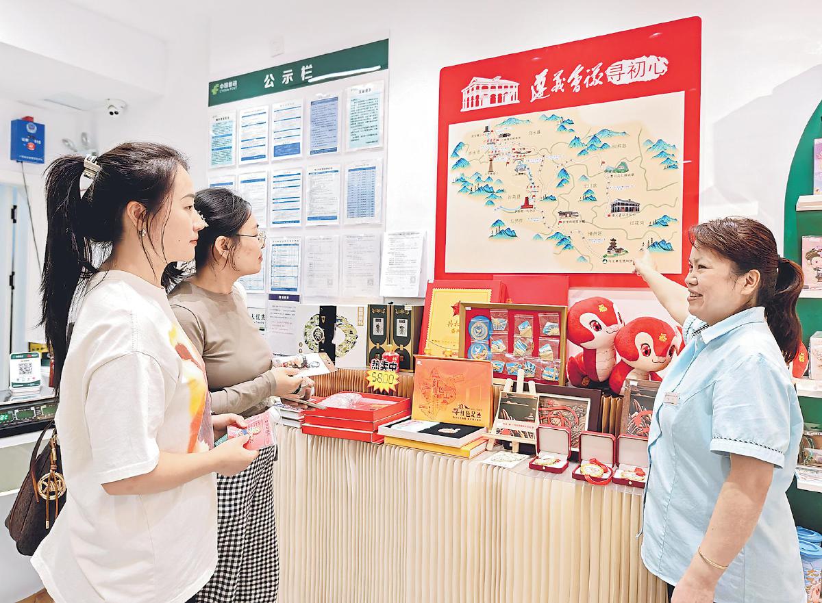 邮局里最热闹的是集戳台。“这个邮局是‘四渡赤水’精品线路的第一个打卡点,在这里可以集戳。如果游客集齐了8个打卡点的邮戳,可以领取一份纪念品。”遵义市红花岗区邮政分公司总经理杨静说。