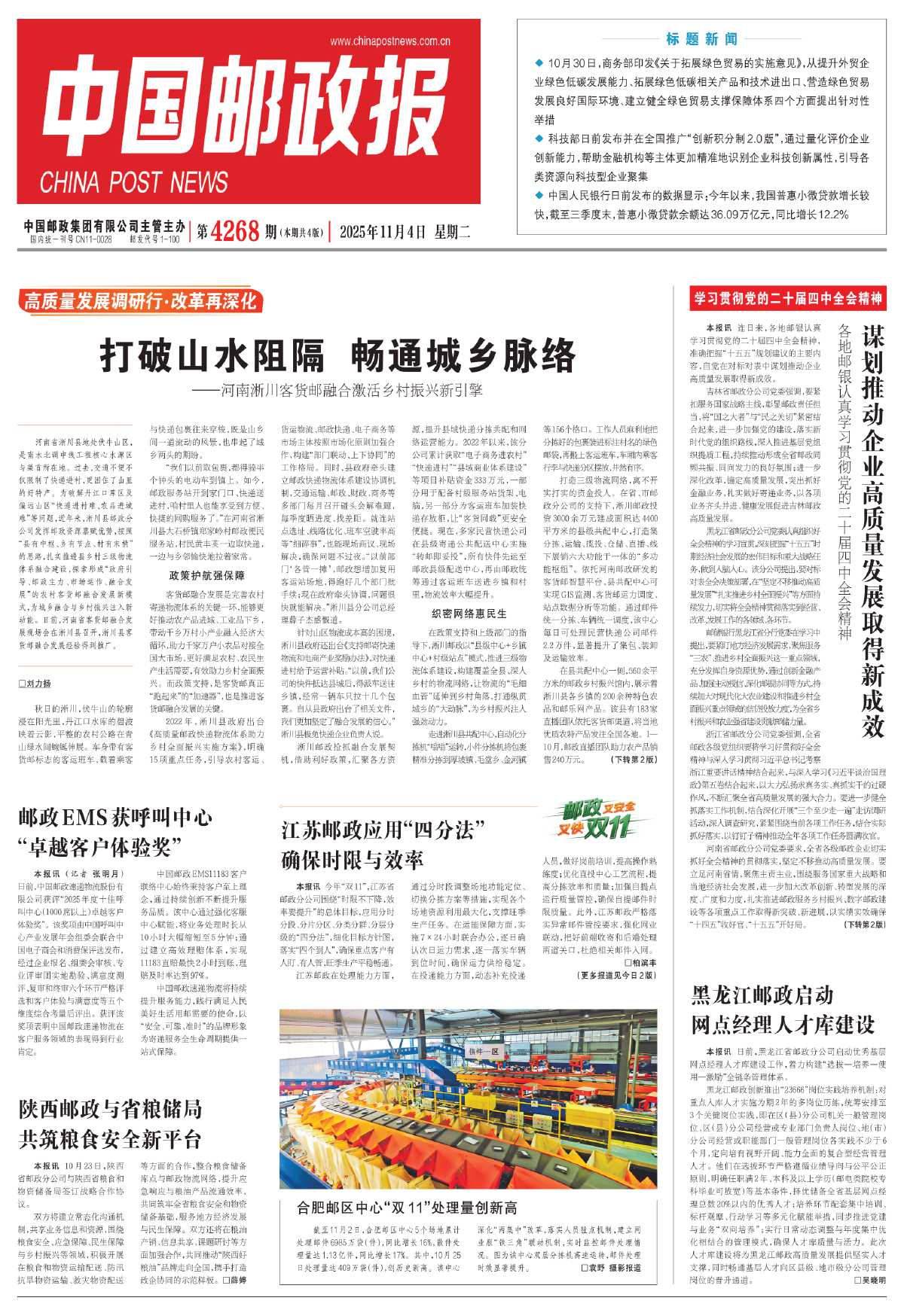 陕西省邮政分公司党委表示,要对标对表全会部署的“十五五”时期战略任务和重大举措,进一步吃透上情、掌握外情、把准省情、摸清下情,锚定机遇,深挖潜能,齐心协力为企业未来发展谋好篇布好局。要结合当前工作,紧盯企业发展稳增长,坚决守牢安全底线,确保完成全年目标任务,实现“十四五”圆满收官与“十五五”良好开局,以全会精神为指引,在中国式现代化陕西篇章中书写邮政新答卷。