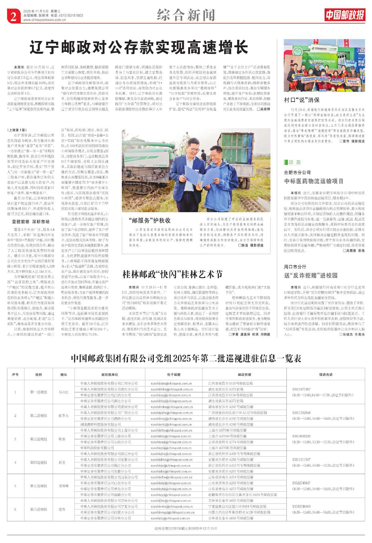 中国邮政集团有限公司党组2025年第二批巡视进驻信息一览表