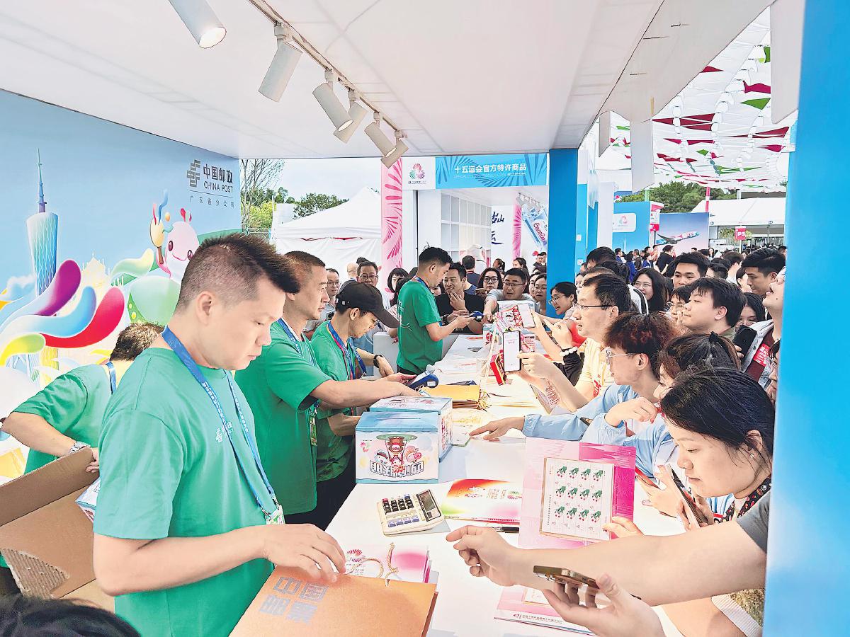 同时,广东邮政针对赛事场馆周边、运动员酒店、新闻中心等重点区域提供优先寄递、上门取件等个性化服务,提升服务保障能力,切实满足赛会期间的用邮需求。为确保服务品质,广东邮政提前开展多轮专业培训和实战演练,确保服务团队成员熟悉全运会相关知识和邮政各项业务。现场观众对邮政服务和产品给予高度评价。来自北京的观众张先生高兴地说:“这些邮品设计精美,我特意选购了纪念邮折和首日封,要把全运会的精彩氛围传递给亲友。”广州当地的李女士也赞叹:“文创产品既有创意又富含意义,是见证这场盛事的珍贵纪念。”