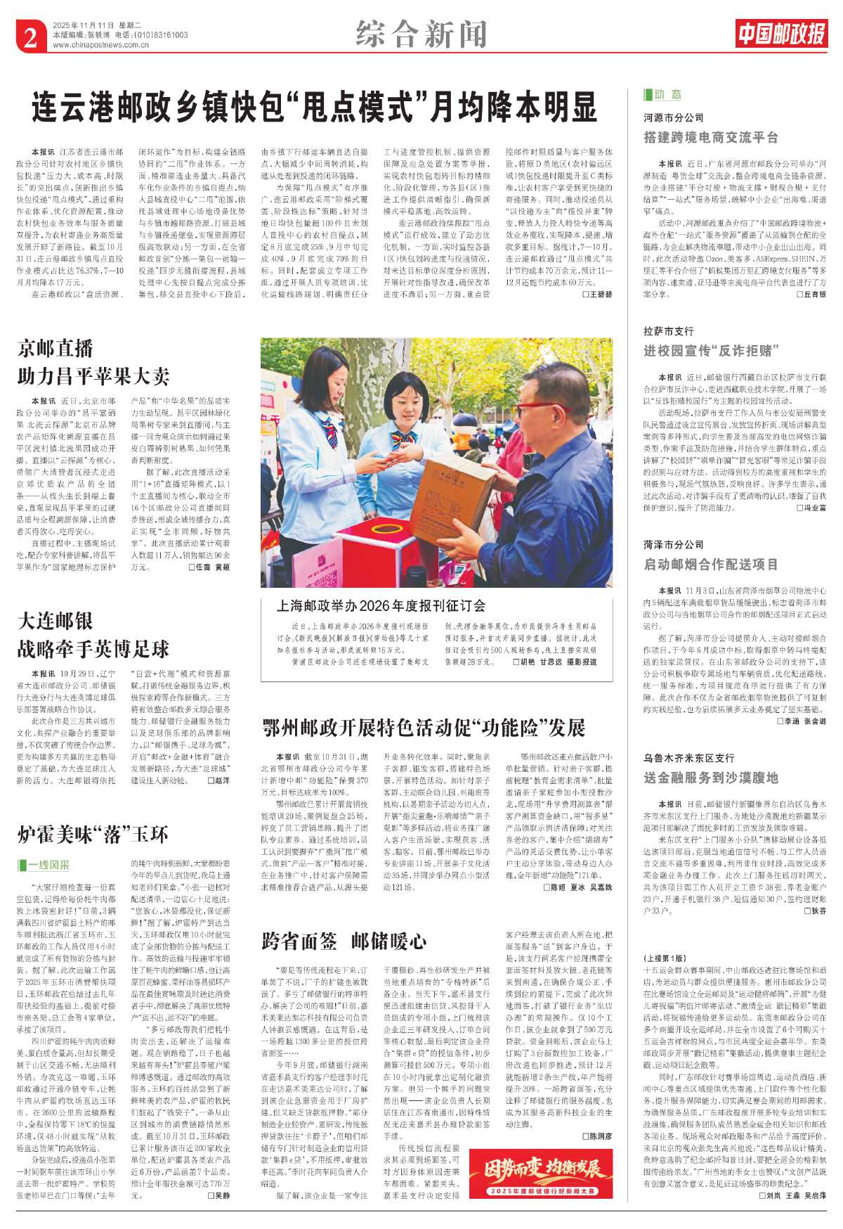 本报讯 11月9日,第十五届全国运动会开幕式在广东奥林匹克体育中心盛大举行。中国邮政作为行业“国家队”,以“不一样的邮政,不一样的全运会”为使命,以“当好全运信使、服务国家战略”为主线,全力做好赛事服务保障,打造“邮政进赛场、服务进人心”的全运体验。广东省邮政分公司以“1+4”服务矩阵与特色邮品为亮点,为观众打造了一场文化内涵与实用价值兼具的邮政服务盛宴。