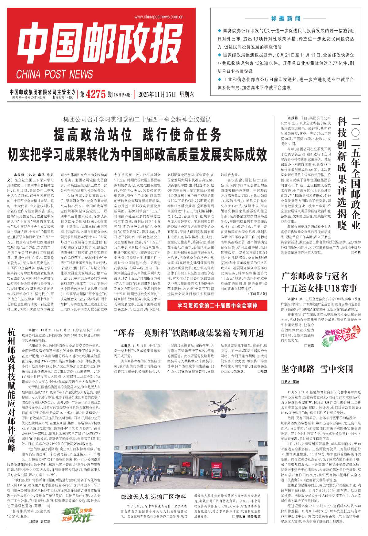 对于滨江区浦沿揽投部的揽投员来说,今年是无人车陪伴他们奋战“双11”的第3年了。“遇到比较大的包裹,可以提前让无人车进行转驳,减少了投递员来回奔波的次数。”浦沿揽投部经理赵金说。此外,杭州市分公司还升级改造浦沿投递中心,将原有的直线型分拣机改为环形分拣机。目前,该环形分拣机共设置160个格口,每小时处理量达1万件,有效减少了投递员的分拣时间。同时,杭州市分公司优化揽收网点布局,在重点商圈、集群市场增设临时揽收点,延长每日揽收时间,确保邮件“早揽收、早处理”。该分公司还为一家加工、销售羽绒服的客户定制了“经济航空+邮航”的运输模式,既降低了运输成本,也提高了邮件时效。目前,该客户将线上销售的服装都交给邮政寄递。
