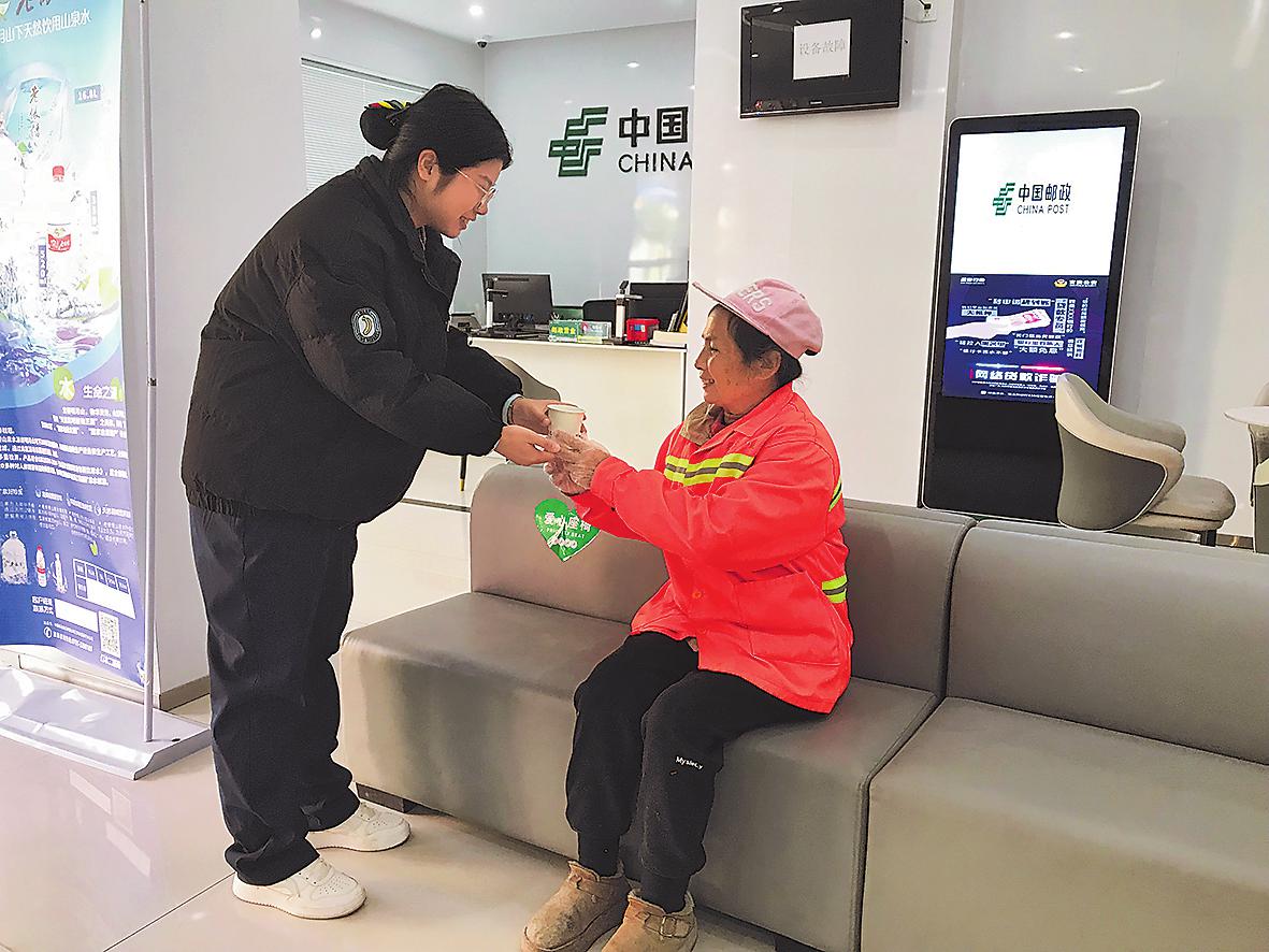 进入12月,江西省泰和县冬意渐浓。泰和县邮政分公司主动开放所有网点作为“暖心驿站”,为环卫工人、快递小哥、交警等户外劳动者提供饮用热水、加热饭菜、临时休息等便民服务,让邮政网点成为寒冬中的“暖心港湾”,更成为传递城市温度的“爱心枢纽”。