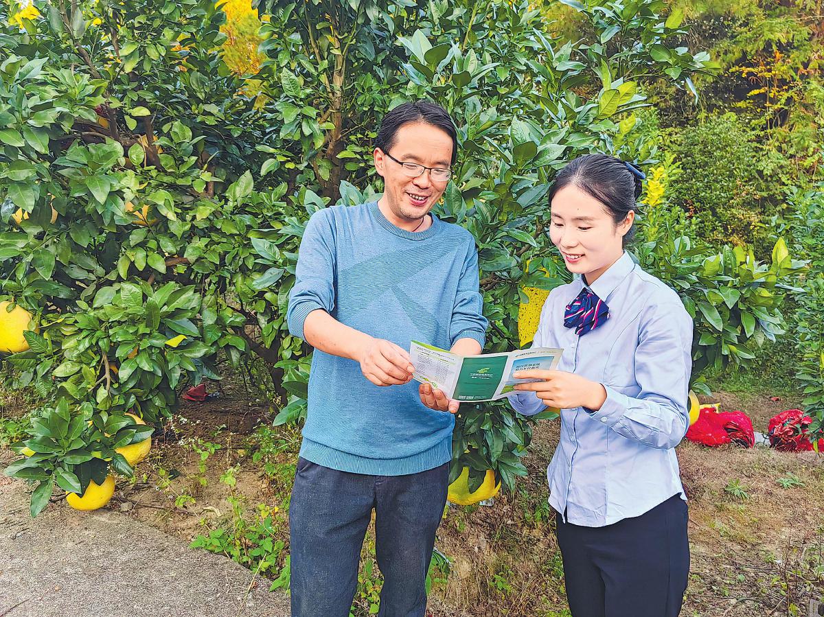 “关键时刻,多亏邮储银行解了我们的燃眉之急。”近日,江西省上饶市广丰区鸡公山种养专业合作社法人胡晓燕感谢邮储银行上饶市分行给他“贷”来的转变。当初,在了解到该合作社购买农机、化肥资金出现短缺情况后,上饶市分行信贷客户经理上门服务,现场指导客户申请“极速贷”,10分钟后,15万元就到了胡晓燕的账户上。近年来,上饶市分行全方位、多维度推进马家柚产业发展,持续为涉农产业输送发展动力。截至目前,该分行涉农贷款余额超163亿元。 □饶梦婷 摄影报道