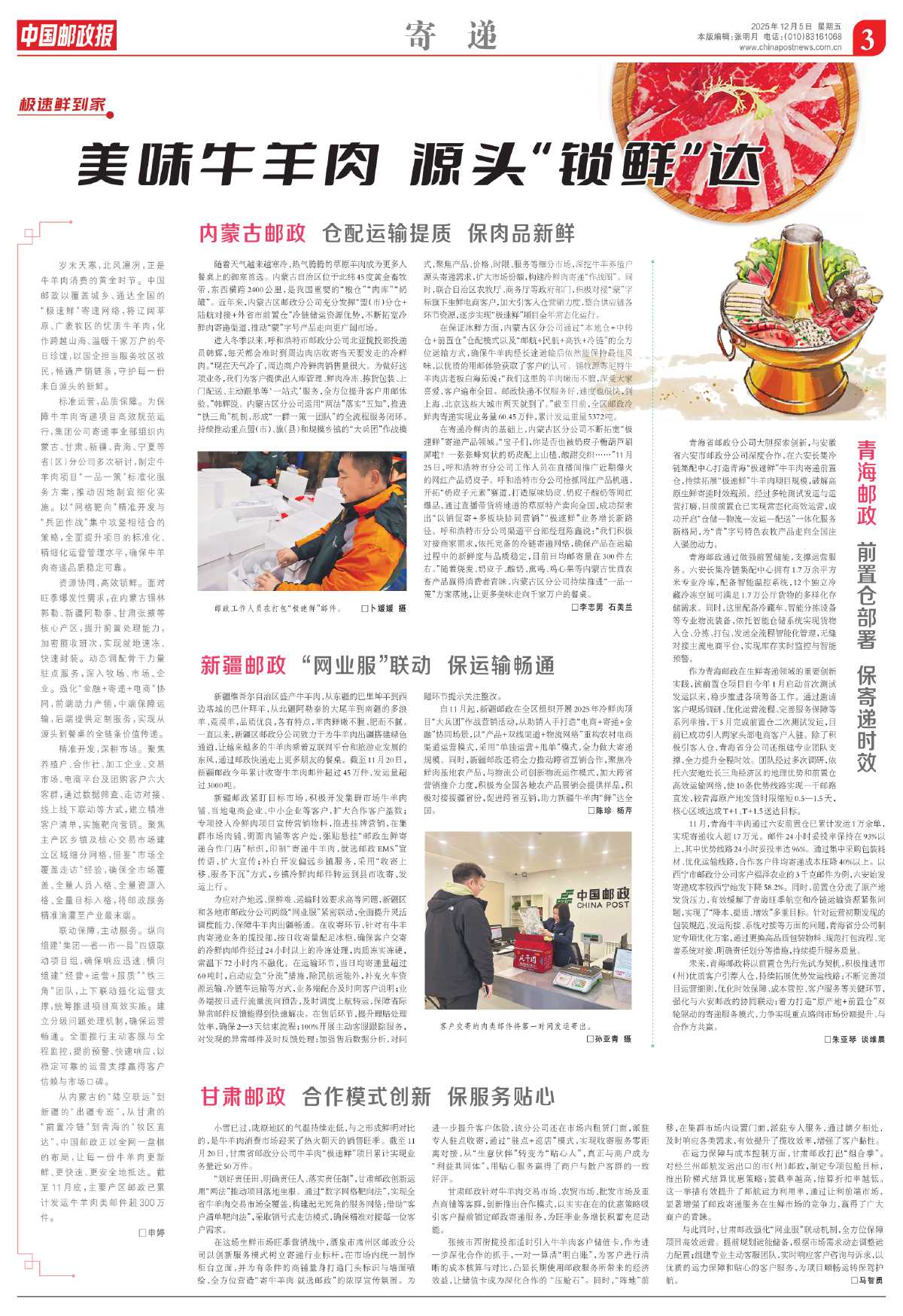 内蒙古邮政 仓配运输提质 保肉品新鲜