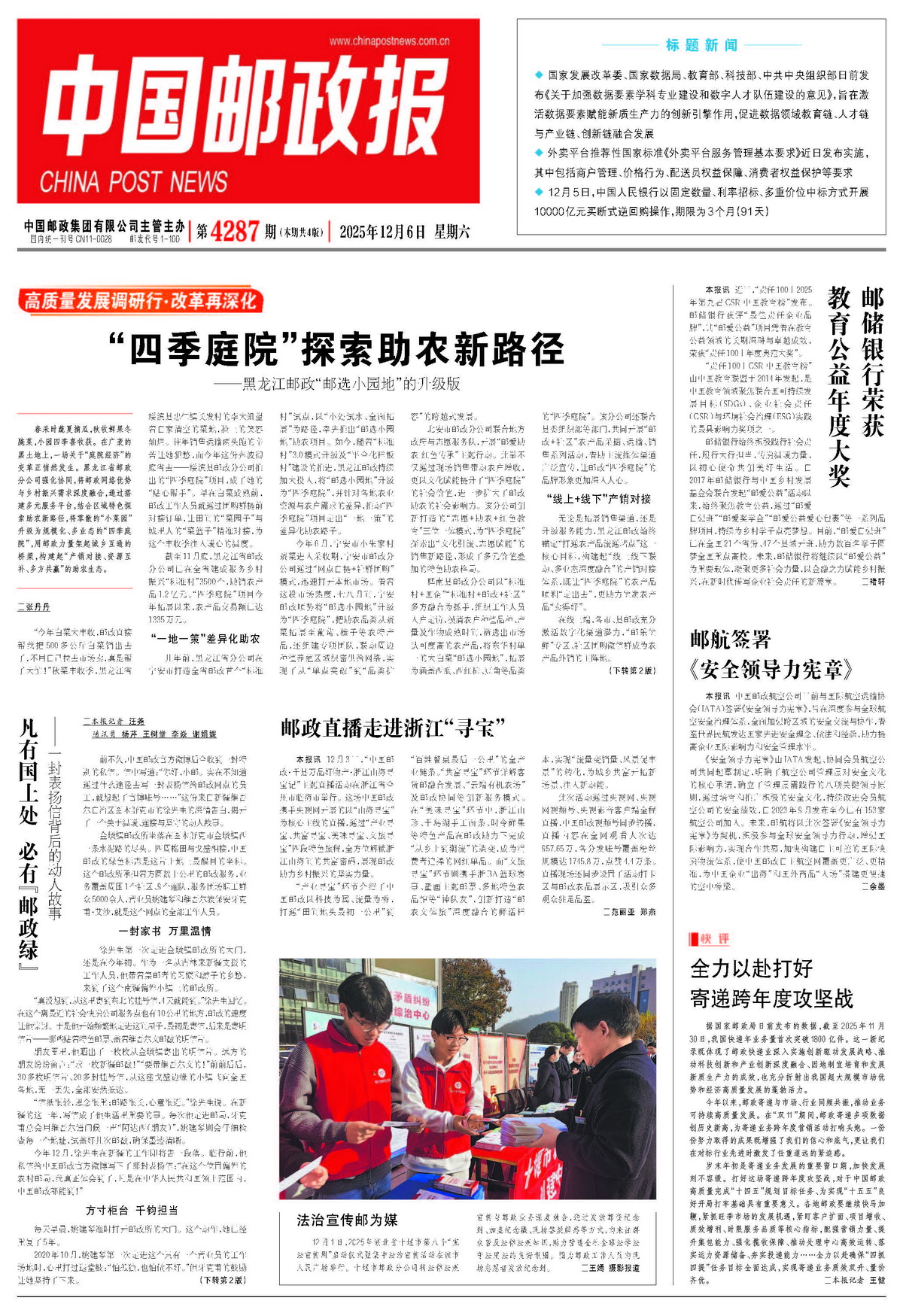 一个个鲜活的助农故事,凝聚着邮政人扎根黑土的智慧与助农兴农的深厚情怀。作为服务乡村振兴的重要力量,黑龙江邮政用行动诠释着“人民邮政为人民”的传承与担当。未来,他们将持续提升“标准村”平台化、品牌化水平,深化“邮政+”融合模式,以更精准的服务、更创新的举措,让“四季庭院”结出更丰硕的果实。