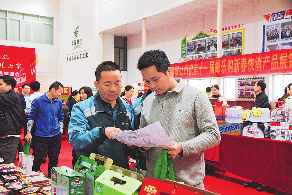 11月21日至25日,广西壮族自治区贵港市邮政分公司接连举办了3场邮乐购新春快消产品订货会,15家经销商、520余名客户受邀参加,展品涵盖饮料、粮油、调味品等500余款商品。订货会通过现场选购和线上下单的方式,实现总订货额近600万元。 □覃东新 叶桂银 摄影报道