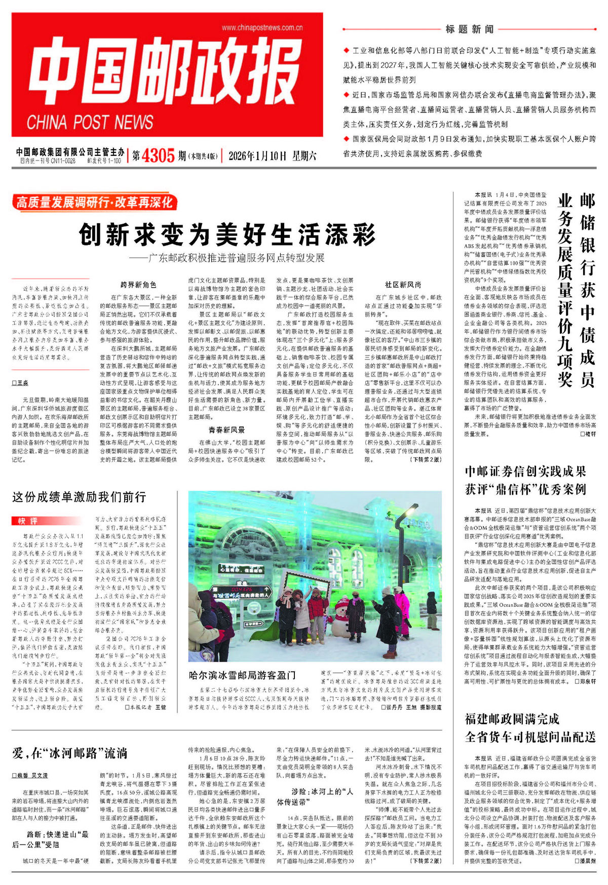 广东邮政打造校园服务生态,发挥“首席推荐官+校园阵地”的联动优势,转型创新主要体现在“三个多元化”上:服务多元化,在提供邮政普遍服务的基础上,销售咖啡茶饮、校园专属文创产品等;定位多元化,不仅具备服务学生日常用邮的基础功能,更赋予校园邮局产教融合实践基地的育人定位,学生可在邮局内开展勤工俭学、直播实践、原创产品设计推广等活动;环境多元化,致力打造“邮、学、娱、购”等多元化的舒适便捷的服务空间,推动邮局服务从“以普服为中心”向“以师生需求为中心”转变。目前,广东邮政已建成校园邮局52个。