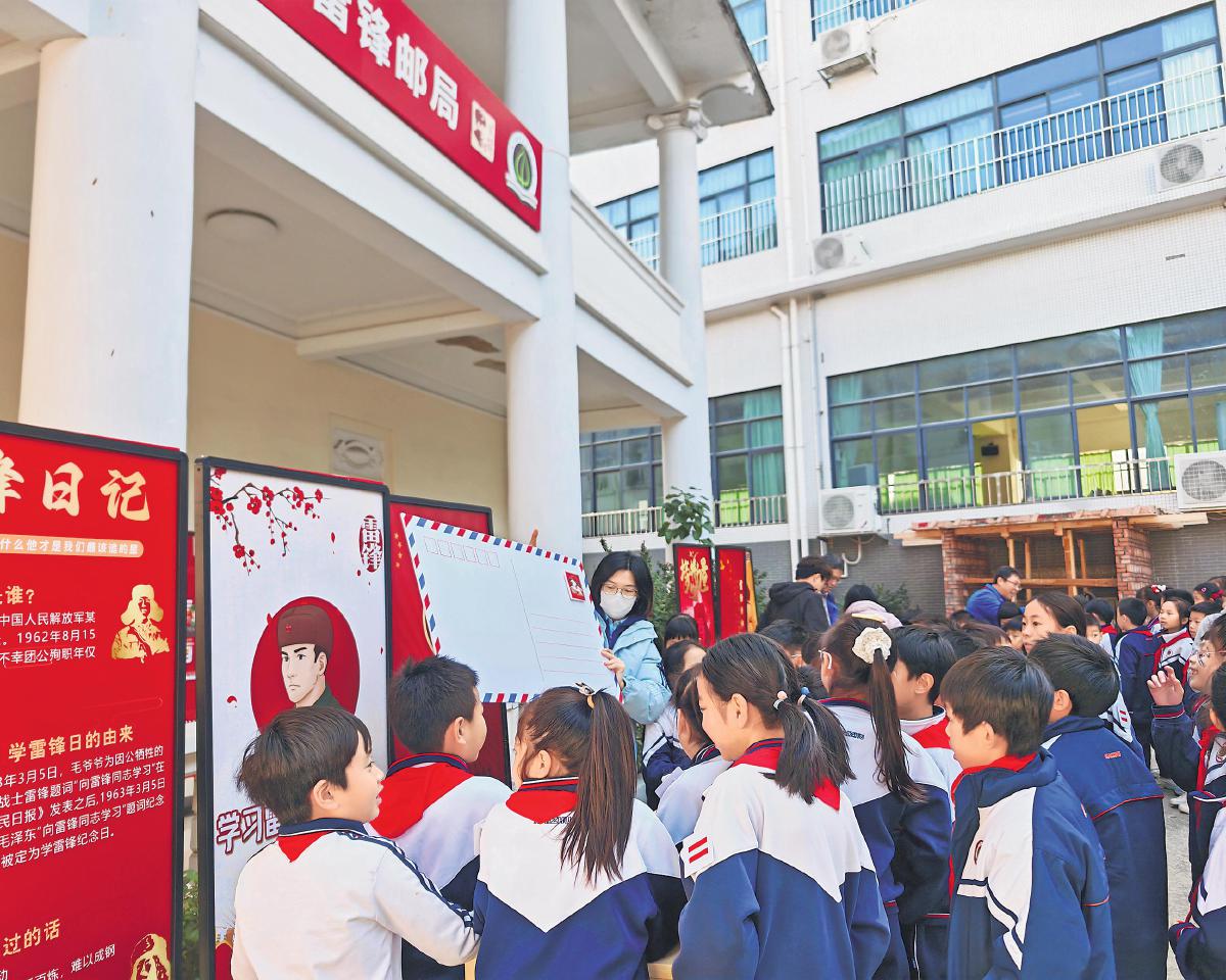 该“雷锋邮局”具备三大育人功能:精神宣传站——通过主题展览、特色邮戳、故事长廊等形式,让雷锋精神可观可感;实践体验点——组织学生担任“小小邮政员工”,参与信件整理、志愿服务,实现知行合一;家校社协同桥——联动家庭、社区与邮政资源,构建“共育共融”的德育生态。学生代表黄书雅在发言中表达了践行雷锋精神的决心:“我们将以‘小小邮政员工’的身份,传递温暖、服务他人。” □刘岚 吴启萍 摄影报道
