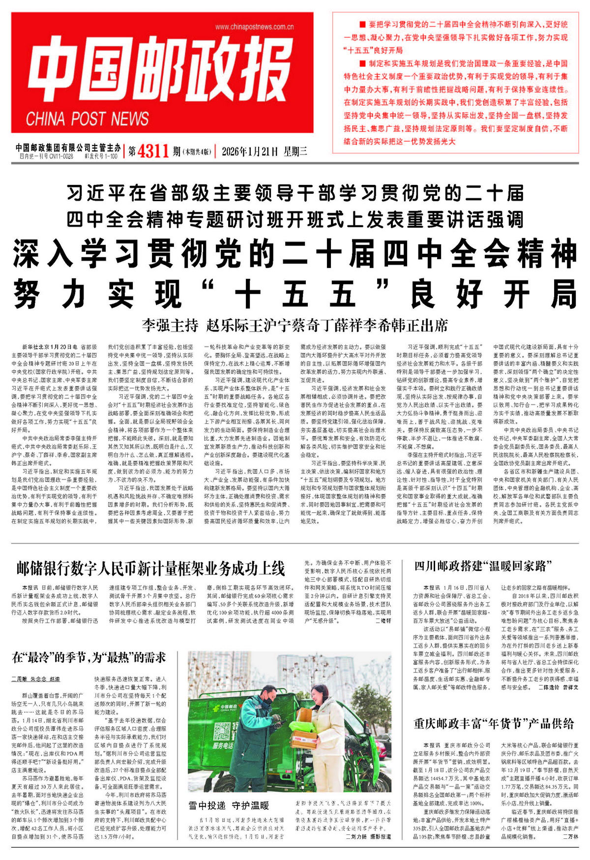 自1月18日起,河南多地迎来大范围低温雨雪冰冻天气,邮政企业积极应对天气变化,确保通信畅通。1月19日,河南省南阳市漫天飞雪,气温降至零下7摄氏度。邮政投递员克服道路湿滑等困难,在银装素裹的城市里忙碌穿梭,把一件件带着温度的包裹准时、安全送到客户手中。