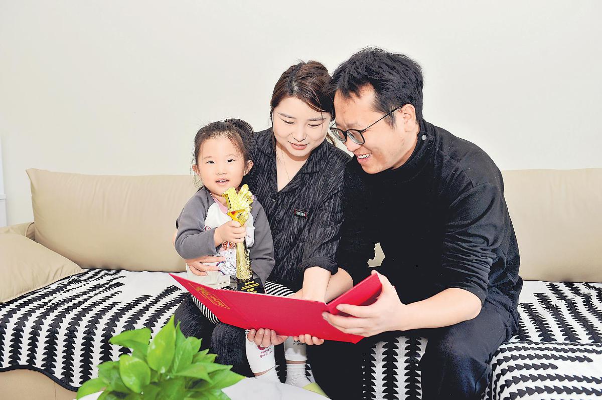 “我认识这个图案,是1。爸爸,你真棒!”两岁的女儿偎在张通怀里,指着奖杯开心地说。