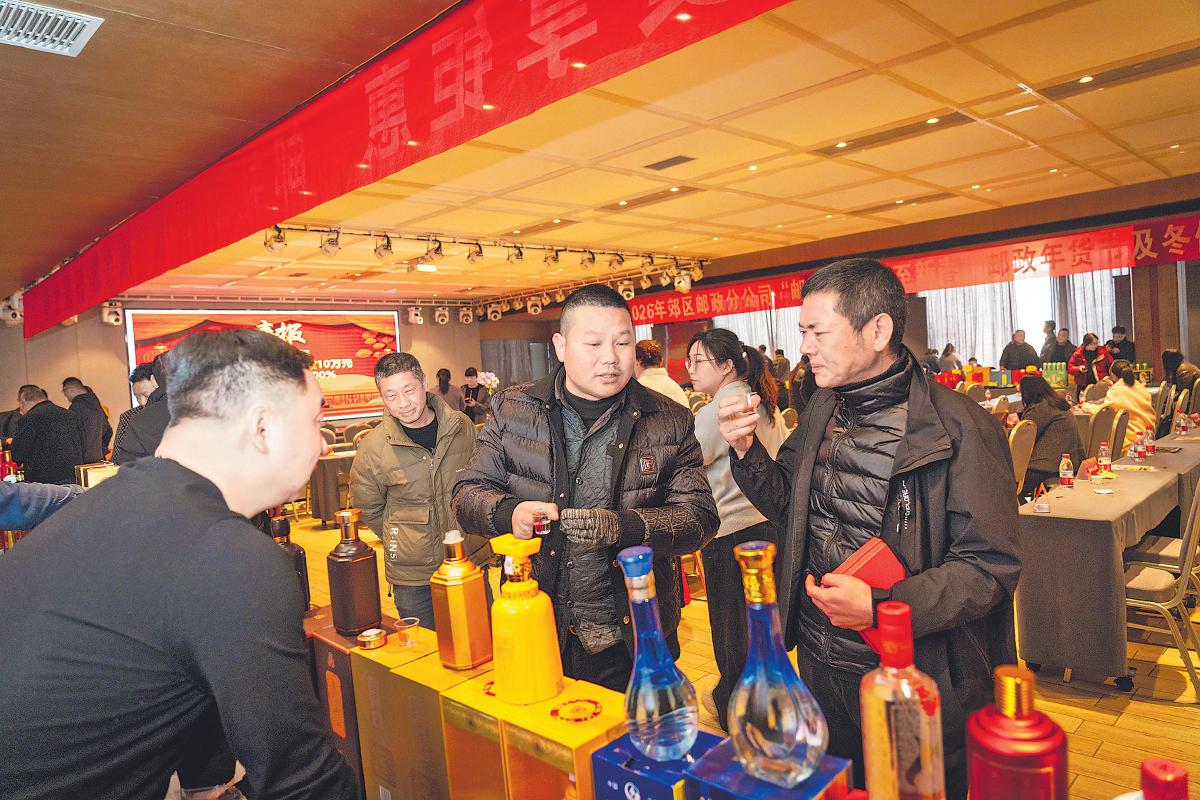 大单品热销激起客流与增收的双重涟漪。不少村级站点靠着粮油大单品的优惠价格,吸引村民扎堆囤货,客流较平日翻了两倍,真正实现“以大单品聚人气、以人气促增收”。社区邮乐购站点凭借酒水礼盒的品质优势,成了周边居民年货采购的“打卡地”,客户黏性显著增强。“邮政组织的‘年货节’特别给力,不仅可以享受源头直供价,还帮我开直播、搞宣传。这不,光大豆油我就卖了400多桶!”钱老板擦着额头的汗水,笑容藏都藏不住。