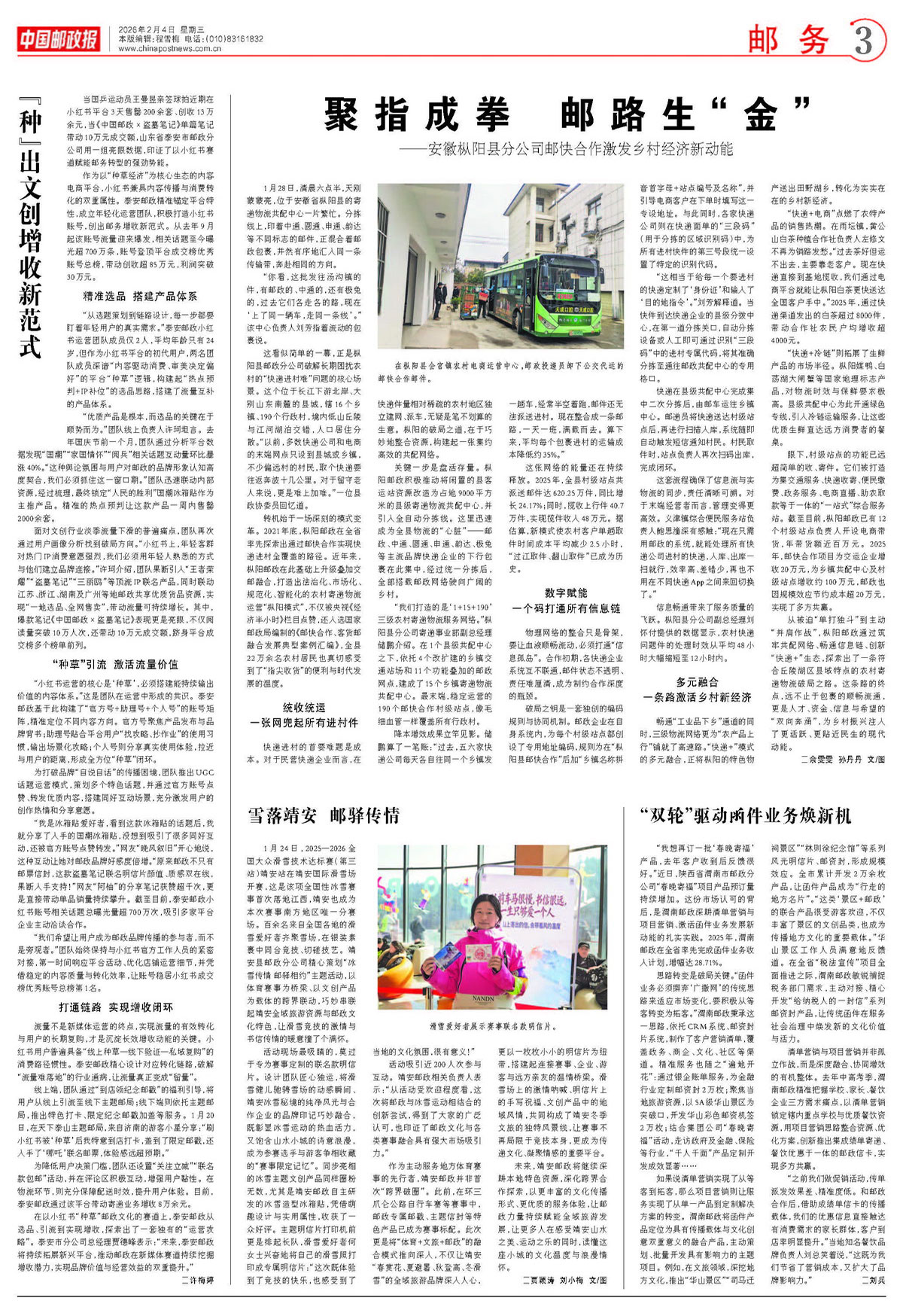 从被迫“单打独斗”到主动“并肩作战”,枞阳邮政通过筑牢共配网络、畅通信息链、创新“快递+”生态,探索出了一条符合丘陵湖区县域特点的农村寄递物流破局之路。这条路的终点,远不止于包裹的顺畅流通,更是人才、资金、信息与希望的“双向奔涌”,为乡村振兴注入了更活跃、更贴近民生的现代动能。