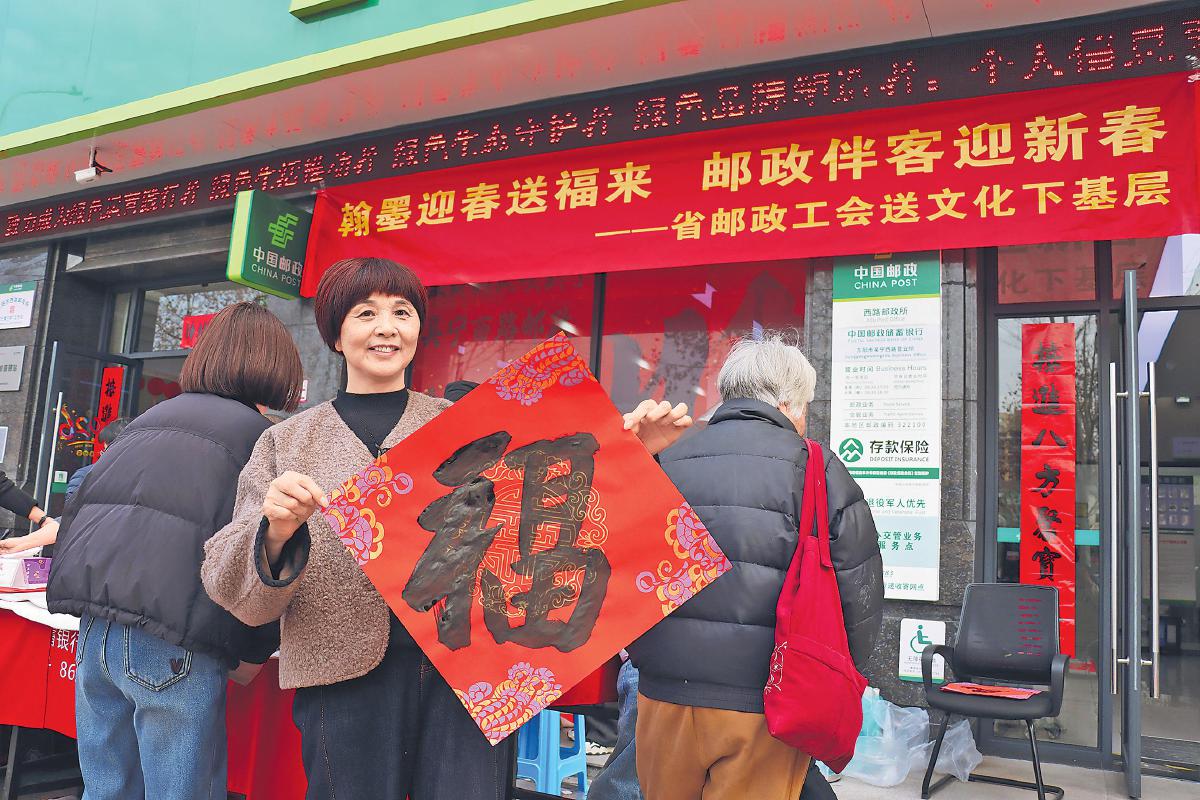 2月4日,浙江省邮政分公司举办的“送文化下基层”活动来到东阳市。东阳市邮政分公司先后在亭塘、吴宁西路两家网点开展“迎春送福”活动,现场书写对联、福字,客户纷纷前来领取,现场气氛热烈。