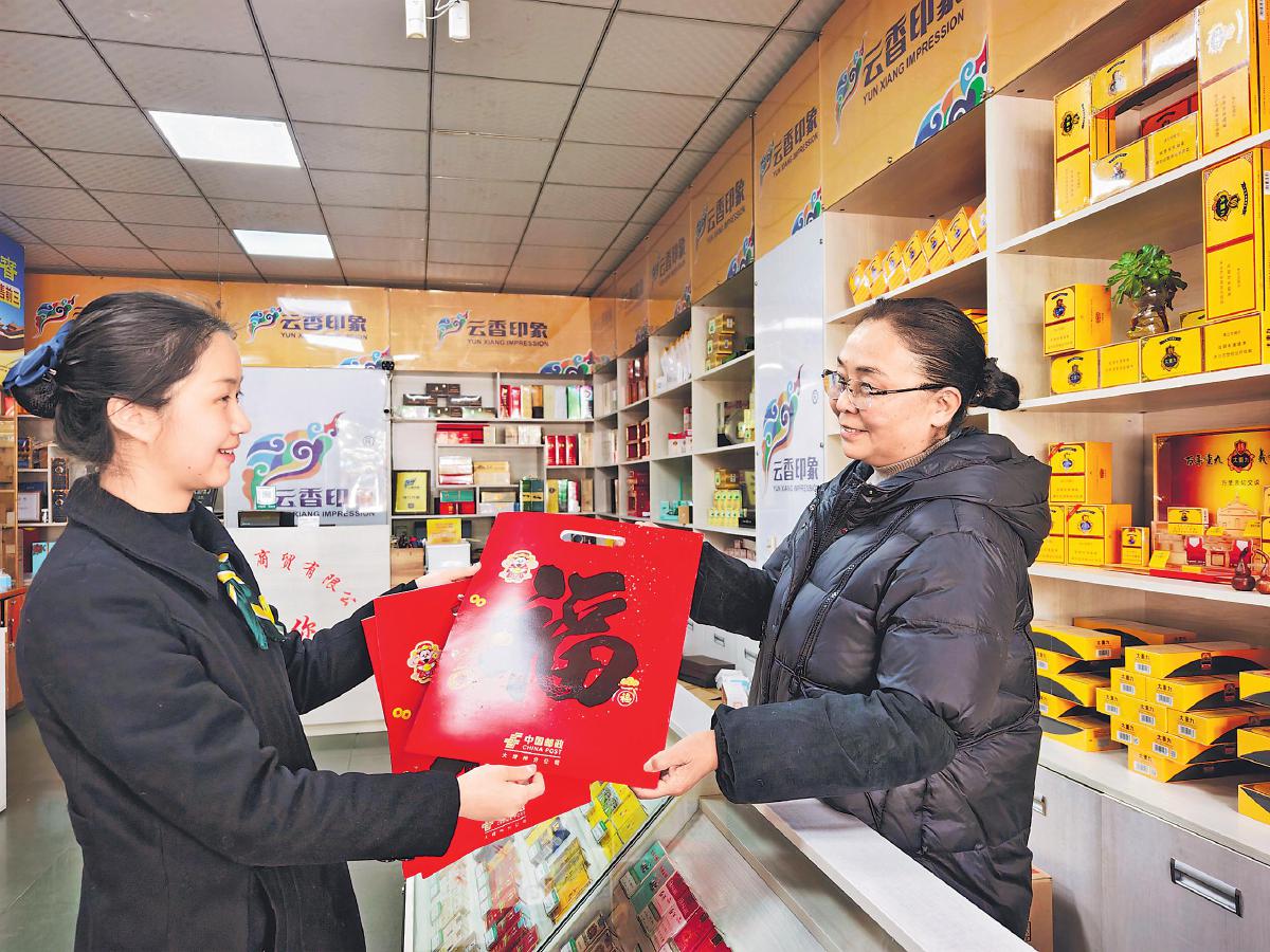 新春将至,年味儿渐浓。近日,云南省大理白族自治州城区邮政分公司组织多支“送福小分队”,深入周边社区、小微商户,将一幅幅满载祝福的春联与一张张福字送到居民手中。