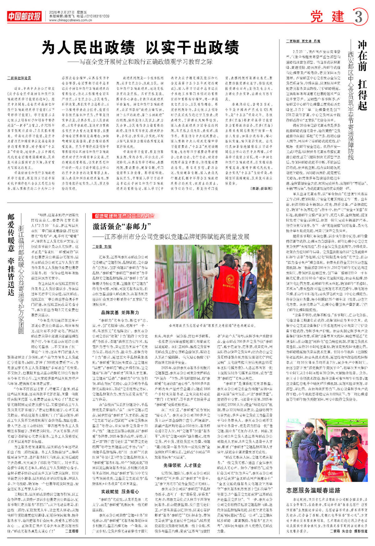 长期以来,温州邮政坚持以党建为引领、以工会为纽带,从坚持开展返乡包裹寄递公益活动,到春节期间寄递服务“不打烊”;从优化站点布局、推出线上预约,到投放无人车、设立无人驿站;从加快邮件揽投速度应对高峰,到延伸便民触角、提升服务水平,始终把服务社会民生、关爱务工群众放在心上。正如陕西的李先生在寄递现场所说:“邮政的服务真是太暖心了!” □王蓉蓉