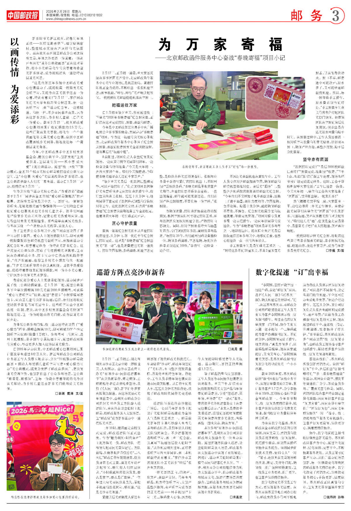 除了邮品销售和文创展陈,工作人员还为市民提供包裹寄递咨询服务。当天下午,陆续有市民将刚刚购买的文创产品和年货带到邮局寄递,享受“逛巡游、买年货、当场寄”的“一站式”服务。带着孩子的外地游客孙女士在寄完包裹后表示:“本来只是带孩子来看巡游,没想到还能顺便把刚买的年货寄给家乡的亲友,省得再跑一趟快递点,确实方便。”