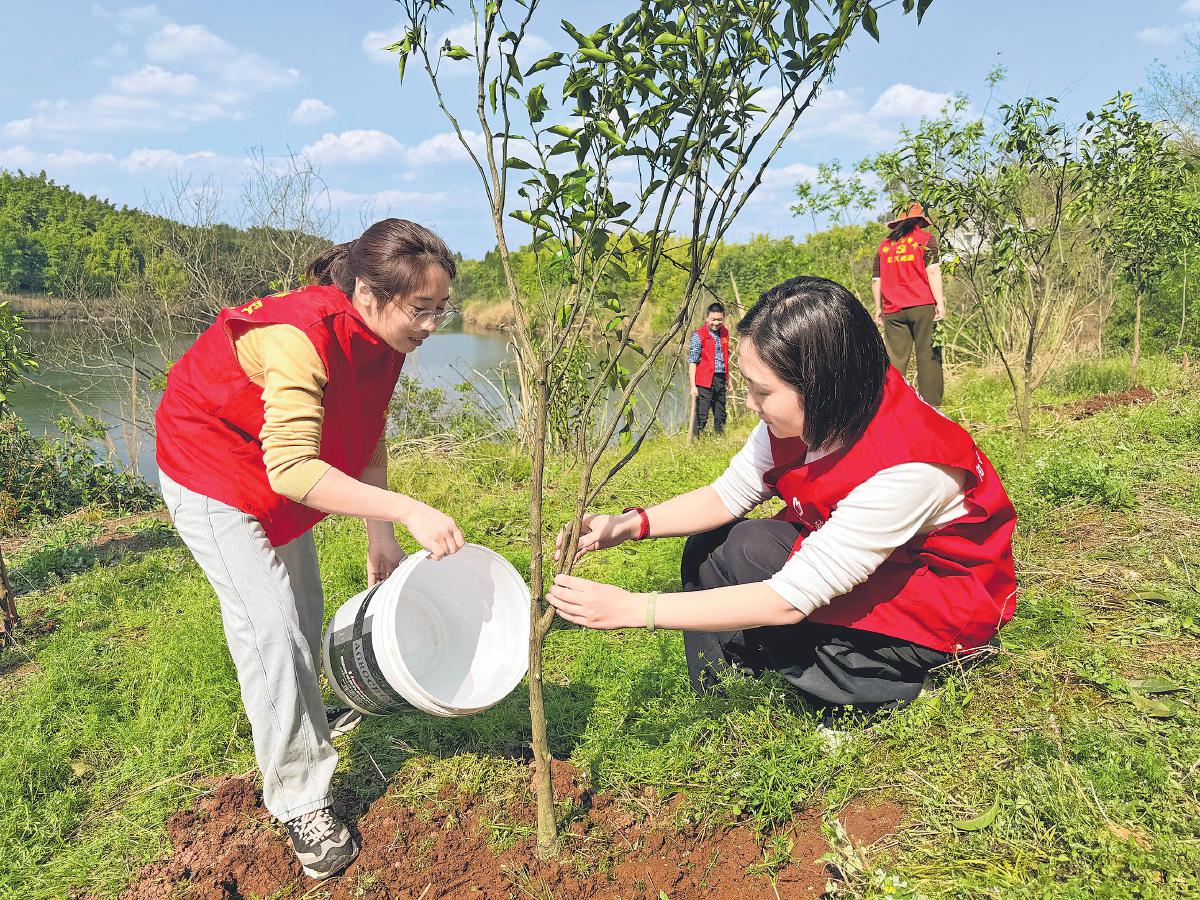 3月12日,四川省内江市东兴区邮政分公司党支部组织党员、团员开展了植树活动,积极践行绿色邮政理念,为大地添上一抹新绿。植树现场,大家分工协作,挥锹挖坑、扶苗填土、踩实浇水,将一棵棵充满生机的树苗植入泥土之中。□陈斯斯 摄影报道