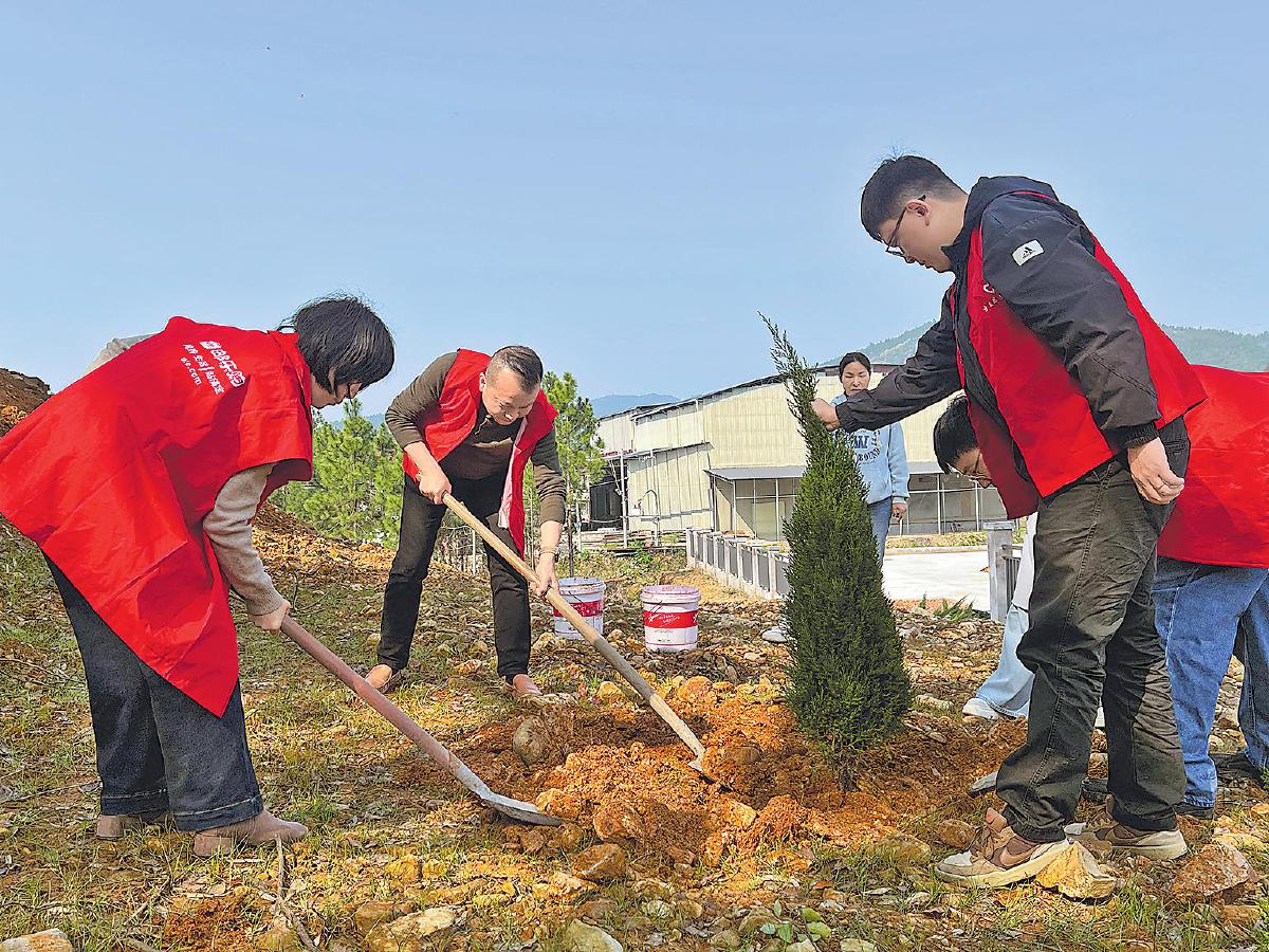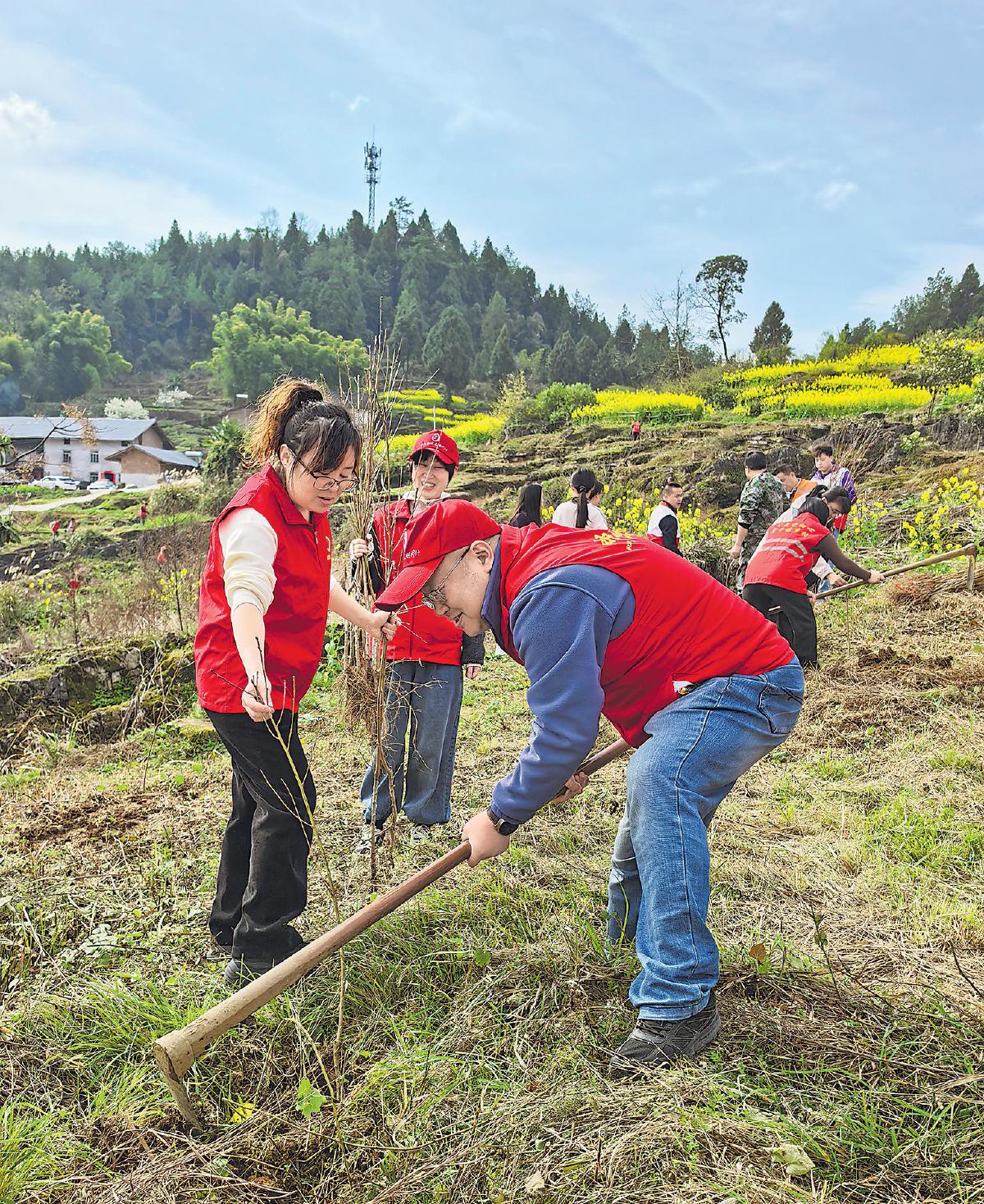 重庆市南川区邮政分公司党总支联合团区委、水江镇党委开展党建共建活动,组织党团员志愿者走进下乐村,开展春季义务植树。大家共栽种桃树、樱花树300棵,践行了绿色发展理念,生动展现了“绿色邮政”的良好形象。