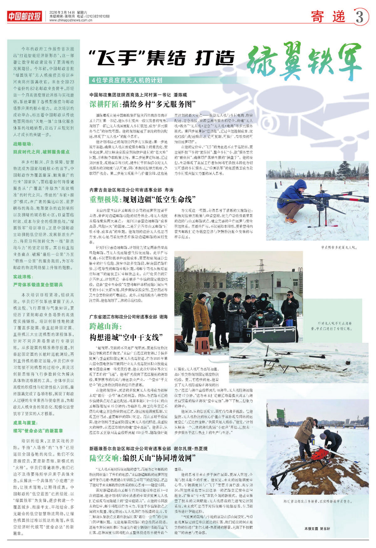 在他的定位中,“飞手”的角色远不止于驾驶员,更应是科技下乡的“宣传员”、整合乡村“小、散”服务需求的“联络员”、确保项目落地生根的“操盘手”。他的设想,生动展现了基层工作者如何将前沿技术转化为切实可感的乡村服务,让“绿翼铁军”的翅膀真正成为助力乡村振兴坚实力量的深入思考。
