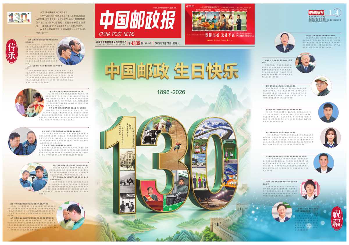 一百三十载栉风沐雨,中国邮政始终扎根大地、情系万家,跨越山海传递温暖与信赖。从书信传情到便民服务,邮政人始终坚守初心,用专业与温度陪伴千家万户、守护财富安全与成长。我骄傲,我是邮政人!在中国邮政130岁生日之际,我衷心祝愿中国邮政薪火相传、基业长青,在新时代新征程上勇毅前行、再创辉煌,以国之担当、民之信赖书写更加壮阔的篇章!