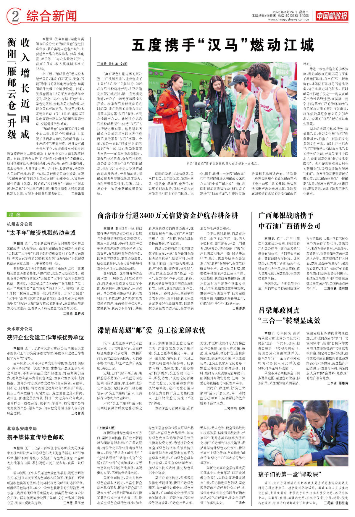 “真有特色!刚完赛的照片登上了‘头版头条’,让我也成了主角!”3月22日7点30分,2026武汉马拉松鸣枪开跑,3万名跑友齐聚江城武汉,踏上最美樱花赛道,开启了一场速度与激情的狂欢。在半程马拉松终点的临时邮局,来自珠海的参赛选手刘春芬手捧专属“汉马”报纸,喜悦之情溢于言表。她还精心挑选马拉松邮品摆件,要把“汉马”的独特记忆带回家。这是湖北省邮政分公司第五次以官方供应商的身份服务“汉马”赛事。今年,该分公司以“群樱荟萃 邮你精彩”为主题,精心布局赛事服务网络——在参赛物品领取处、半程马拉松终点、全程马拉松终点分别设立三处“汉马”临时邮局,并在长江大桥等点位设置邮政农品补给站、音乐加油站,将邮政服务与赛事体验深度融合,为跑者带来集科技、趣味、互动、暖心于一体的全新邮政服务体验。