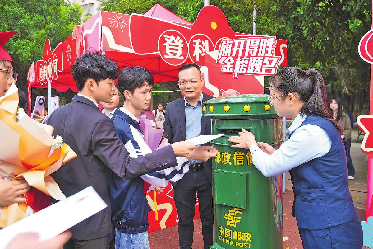 当日,学生们把关于梦想、感恩和不舍的话语写下来,然后依次投入邮筒。这些信件将被统一寄往山东曲阜的“孔子邮局”,盖上专属纪念邮戳后再寄回写信人手中。该活动得到了师生和家长的一致点赞。一位学生家长动情地说:“这个活动把孩子青春的梦想和誓言,变成了一封可以触摸并永久保存的信。感谢邮政,为孩子们记录下这份美好。” □邓皓蓝 摄影报道