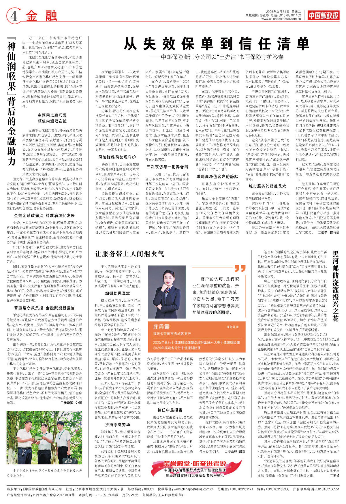 “无论多长的边境线,都不能阻碍我们做好边疆金融服务。”黑河市分行党委书记、行长唐霁同的话语,道出黑河邮储人的坚守。在这片充满希望的黑土地上,邮储人正以实干与实绩,浇灌出一朵朵绚丽的乡村振兴之花。 □王娟