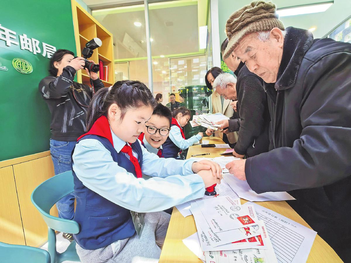3月28日,浙江省桐乡市菊乡少年邮局开门营业。桐乡市邮政分公司将菊乡少年邮局专属名称及品牌资源正式授予市青少年宫,作为青少年校外邮政文化实践专项使用,菊乡少年邮局也拥有了专属纪念邮戳。桐乡邮政为市青少年宫精心设计制作了建宫40周年纪念封、个性化邮折等文创产品。桐乡邮政还聘任热爱集邮与邮政文化的学生担任少年邮局工作人员。 □沈舒莹 摄影报道