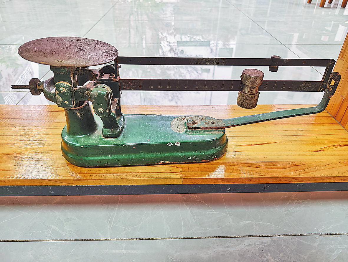另一杆在柜台上。钢化玻璃面板,LED显示屏。每天清晨,组员们到岗后的第一件事,就是校准这杆新秤。