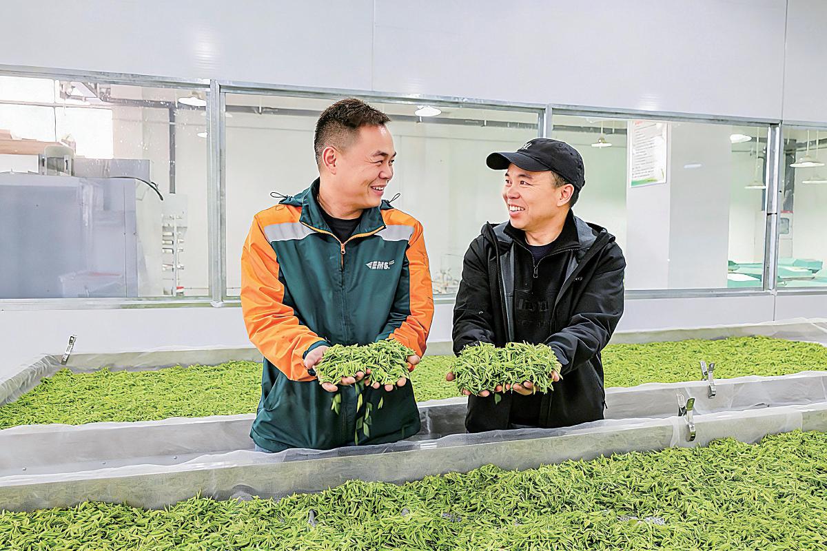 从茶山邮路的蜿蜒穿行,到晒场之上的并肩作业;从采茶垄间的蹲身交谈,到封装流水线的快速分拣,“邮政绿”始终在场。邮政工作人员走进茶园,将金融服务嵌入春茶产销的每个环节;将直播镜头对准茶山,让山野新芽直连都市茶客。这种与产业链的深度融合,是“绿水青山”向“金山银山”转化的坚实基础。
