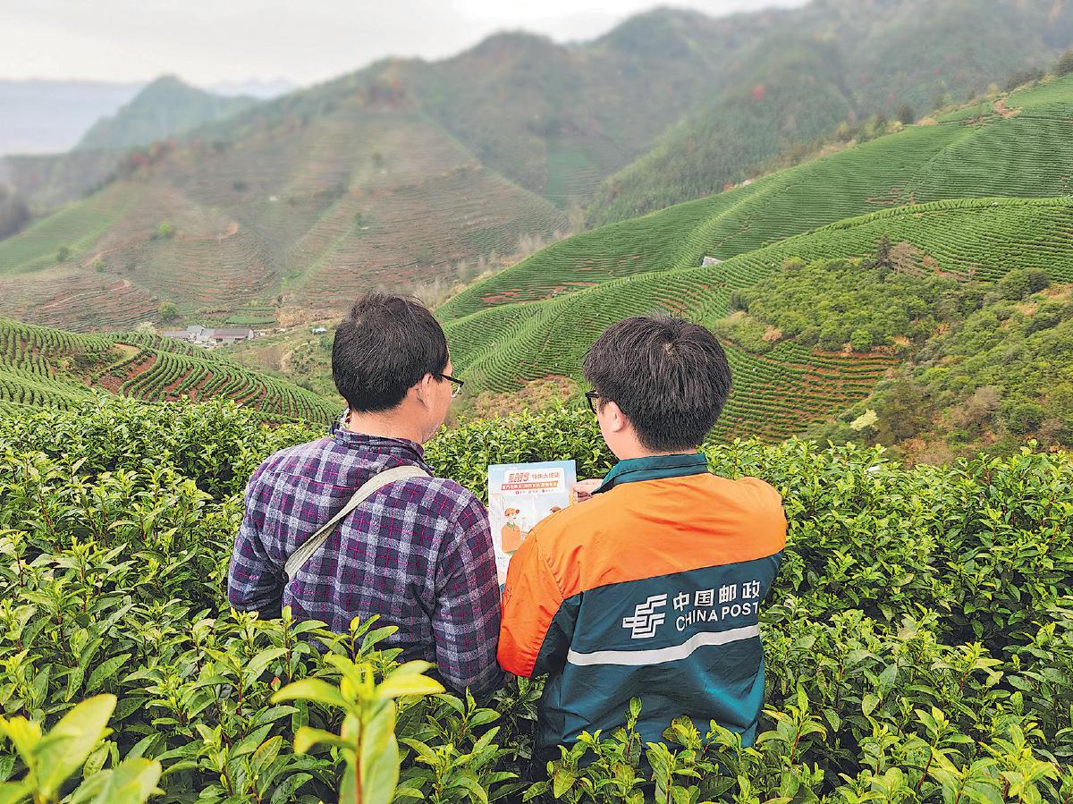 上图:3月31日,揽投员走进茶厂调研寄递需求。