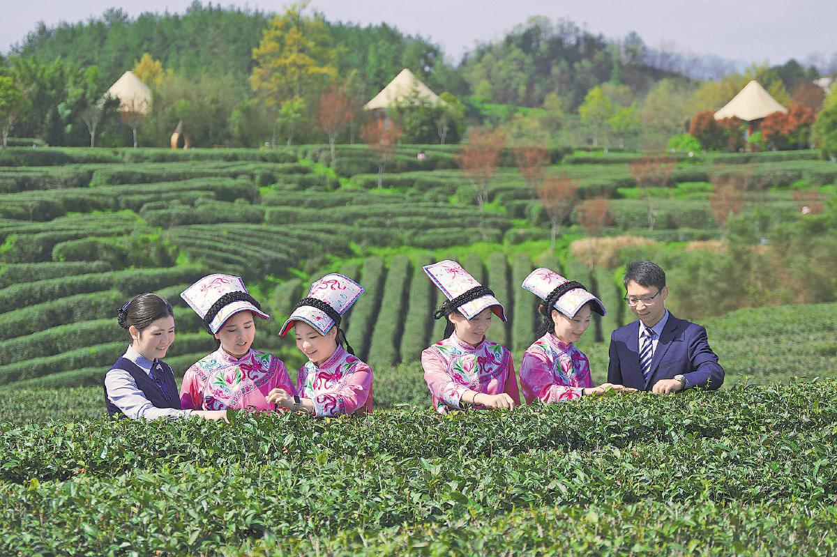 邮储银行陕西省汉中市分行发挥金融主力军作用,将支持茶产业发展作为服务乡村振兴的重要抓手。正值春耕备耕关键时期,汉中市分行工作人员抢抓农时,深入田间地头,精准对接茶农、茶企在茶园管护、农资采购、设备维护等方面的融资需求,通过创新金融产品、优化信贷服务,为当地茶产业注入源源不断的金融“活水”,助力一片叶子成就一个产业、富裕一方百姓,用实际行动在秦巴山水间播撒普惠金融的“春雨”。截至3月底,该分行累计向茶产业全产业链投放贷款15.68亿元。图为汉中市分行工作人员深入茶园,了解春茶采收情况。