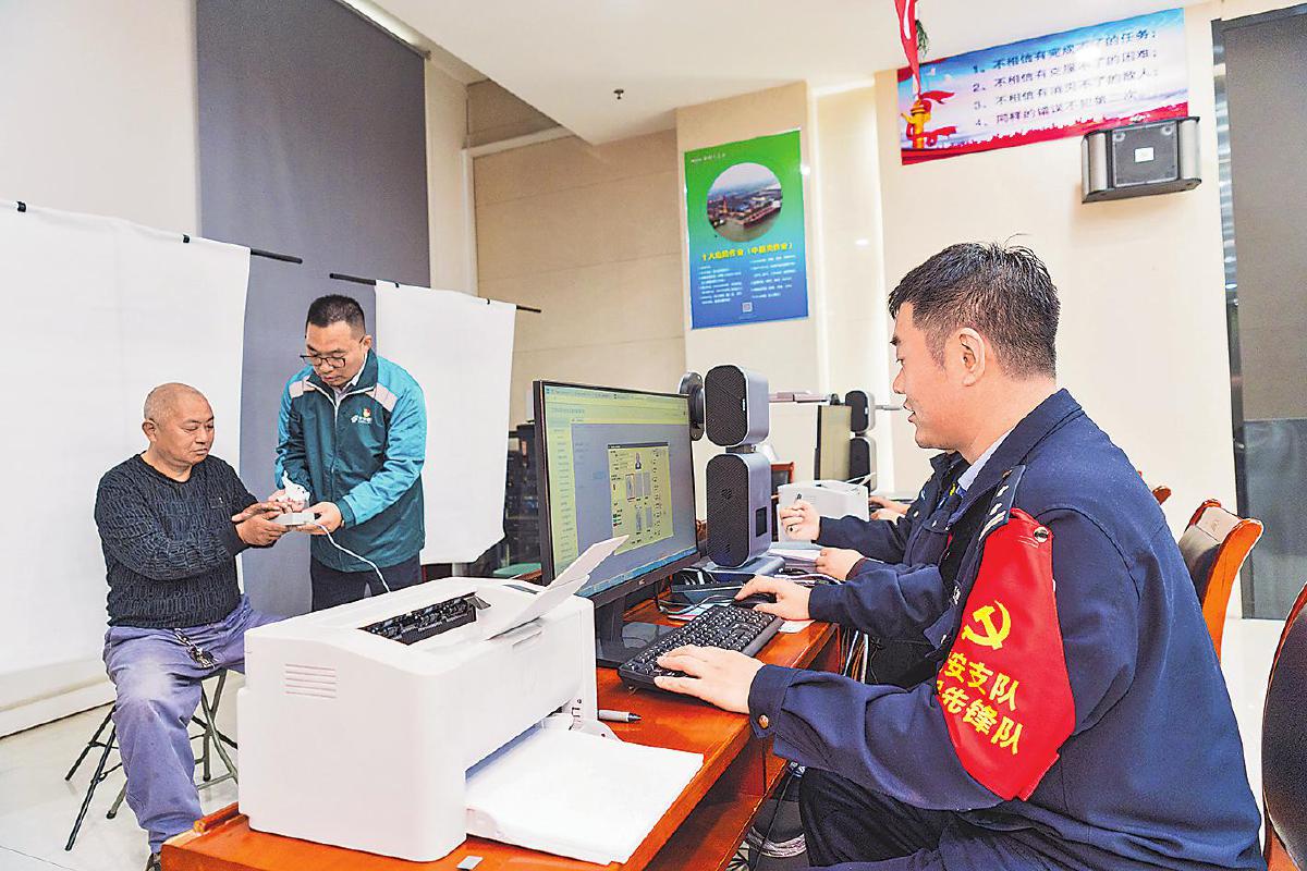 4月15日,江苏省泰州市邮政分公司联合公安部门走进靖江新时代造船厂,开展“零距离”移动办证服务,现场受理业务150件,全部通过邮政特快专递寄递到家,实现“办证不出厂”。此前,泰州警邮双方已在多个校园、社区等地完成测试,证件合格率达100%。此次办证服务现场还同步开展反诈宣传与便民金融服务,真正打通便民服务“最后一公里”。 □郑鑫 摄影报道