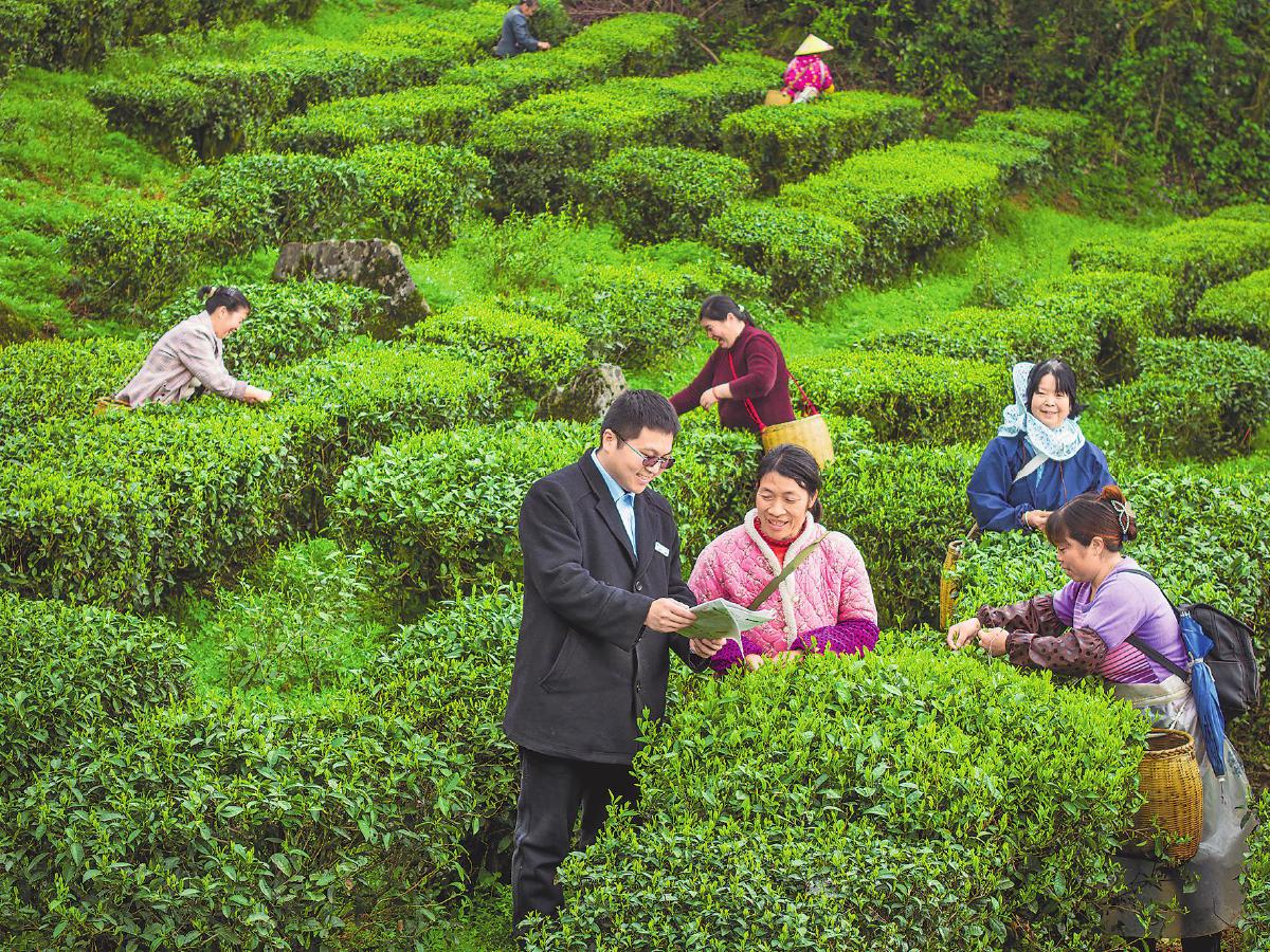 ⑥4月12日,重庆市武隆区,邮政工作人员深入茶山开展普惠金融政策宣讲。