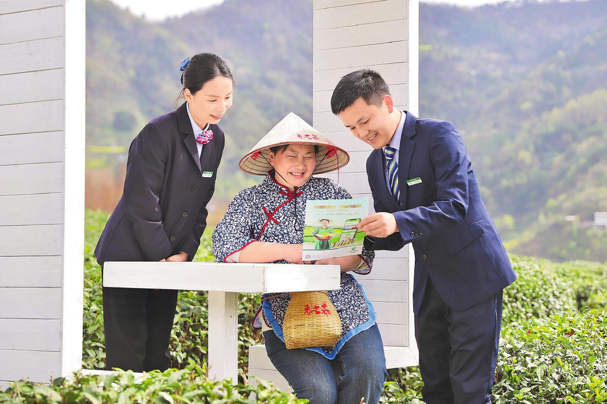 陕西省安康市紫阳县富硒茶园开园在即,邮储银行紫阳县支行客户经理走进茶园,向茶农宣讲惠农信贷办法,将精准金融服务送至产业一线。作为当地富民强县首位产业,紫阳富硒茶已形成拥有26万亩茶园、年产1.28万吨、综合产值超70亿元的发展格局。今年以来,紫阳县支行累计投放信贷资金2.43亿元,以金融力量赋能紫阳茶产业高质量发展,助力乡村全面振兴。 □徐子涵 摄影报道