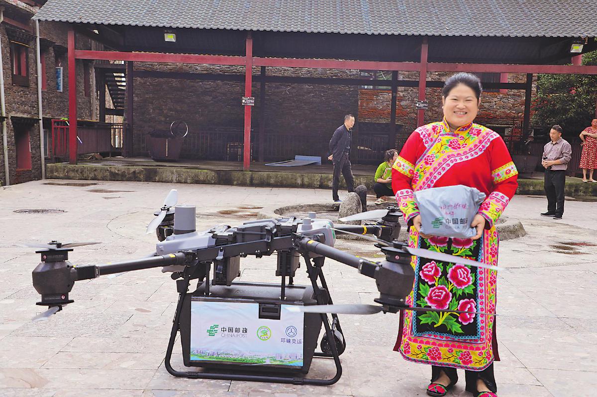 邛崃航线累计飞行90余架次,运载货物650公斤,单程运邮耗时从1小时压缩至20分钟内。该航线入选《人民交通》杂志“2025低空经济典型案例”,荣获成都市“五小”创新成果大赛暨职工创新创效大赛优秀奖。此外,彭州市通济镇航线以“政府供机、邮政供场景”开启政企协同模式,为低空物流多元合作提供了有益探索。