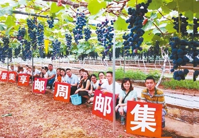四川省资阳市雁江区邮政分公司结合乡村旅游开展“葡萄采摘+集邮周”活动。□赖小洪 摄影报道 |