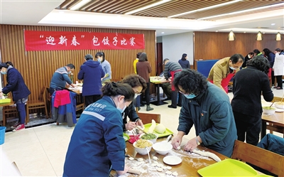 南京邮区中心局举办“迎新春”包饺子比赛。□赵天 摄 |