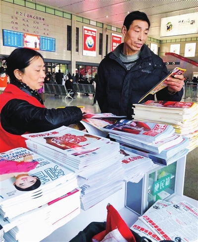 浙江省长兴县邮政分公司联合当地工会开展了“温暖回家路·共享新悦读”公益活动,在高铁站、长途汽车站等地将《特别文摘》《医食参考》《时代邮刊》等4000余册刊物赠送给返乡人员在旅途中阅读。□倪珏峰 摄影报道 |